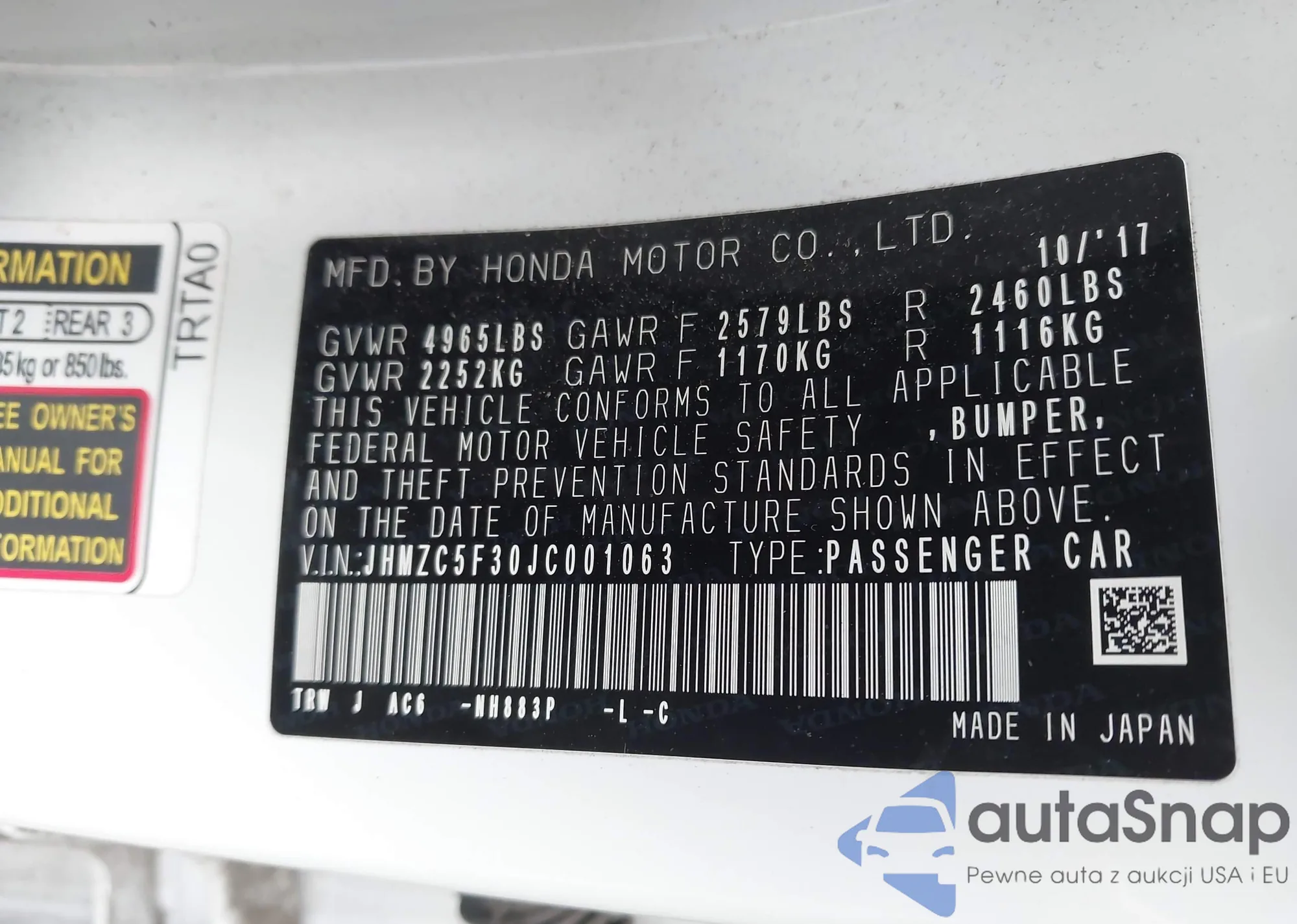 VIN: JHMZC5F30JC001063
