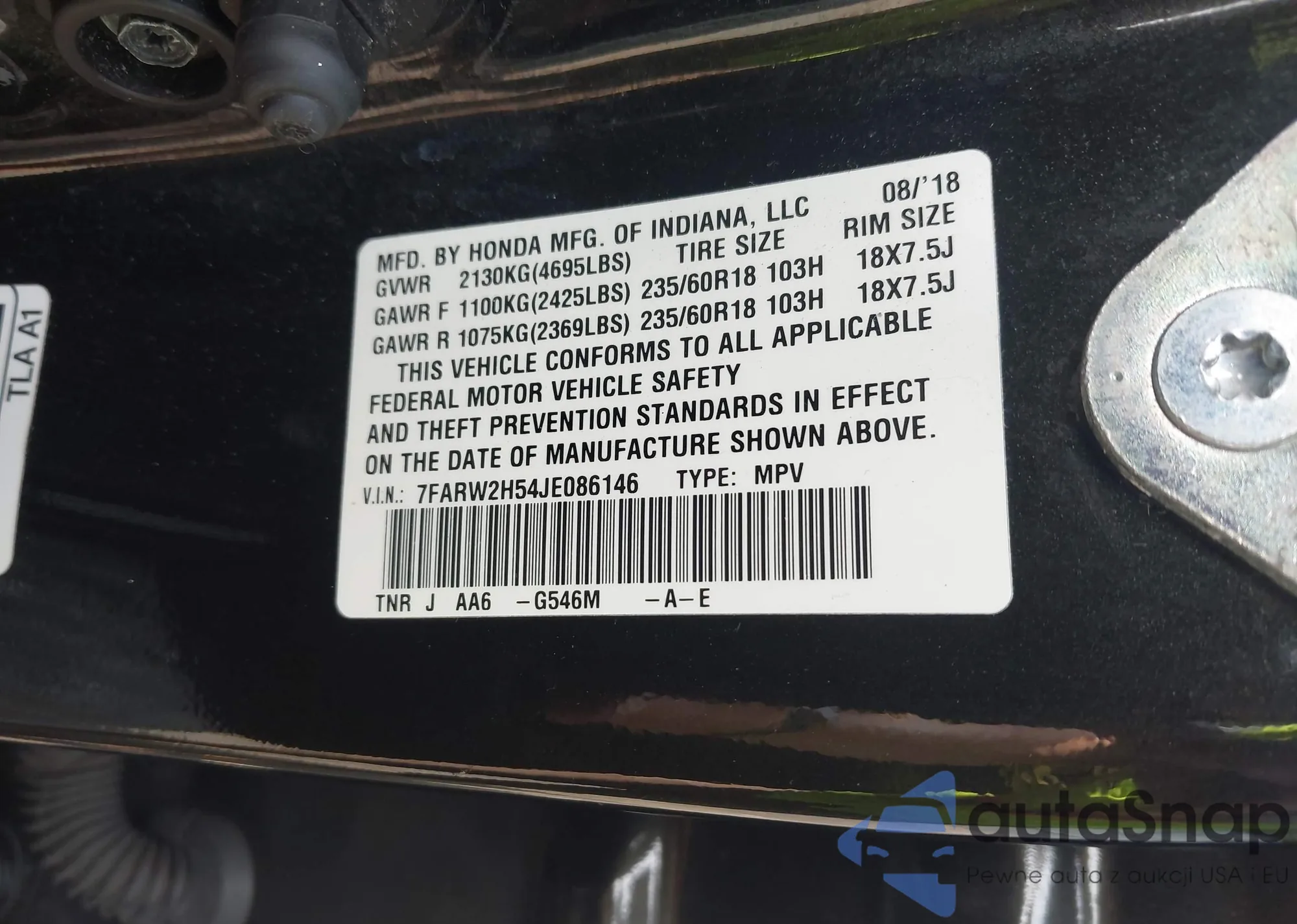 VIN: 7FARW2H54JE086146