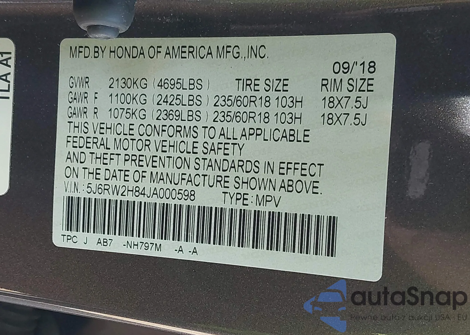 VIN: 5J6RW2H84JA000598