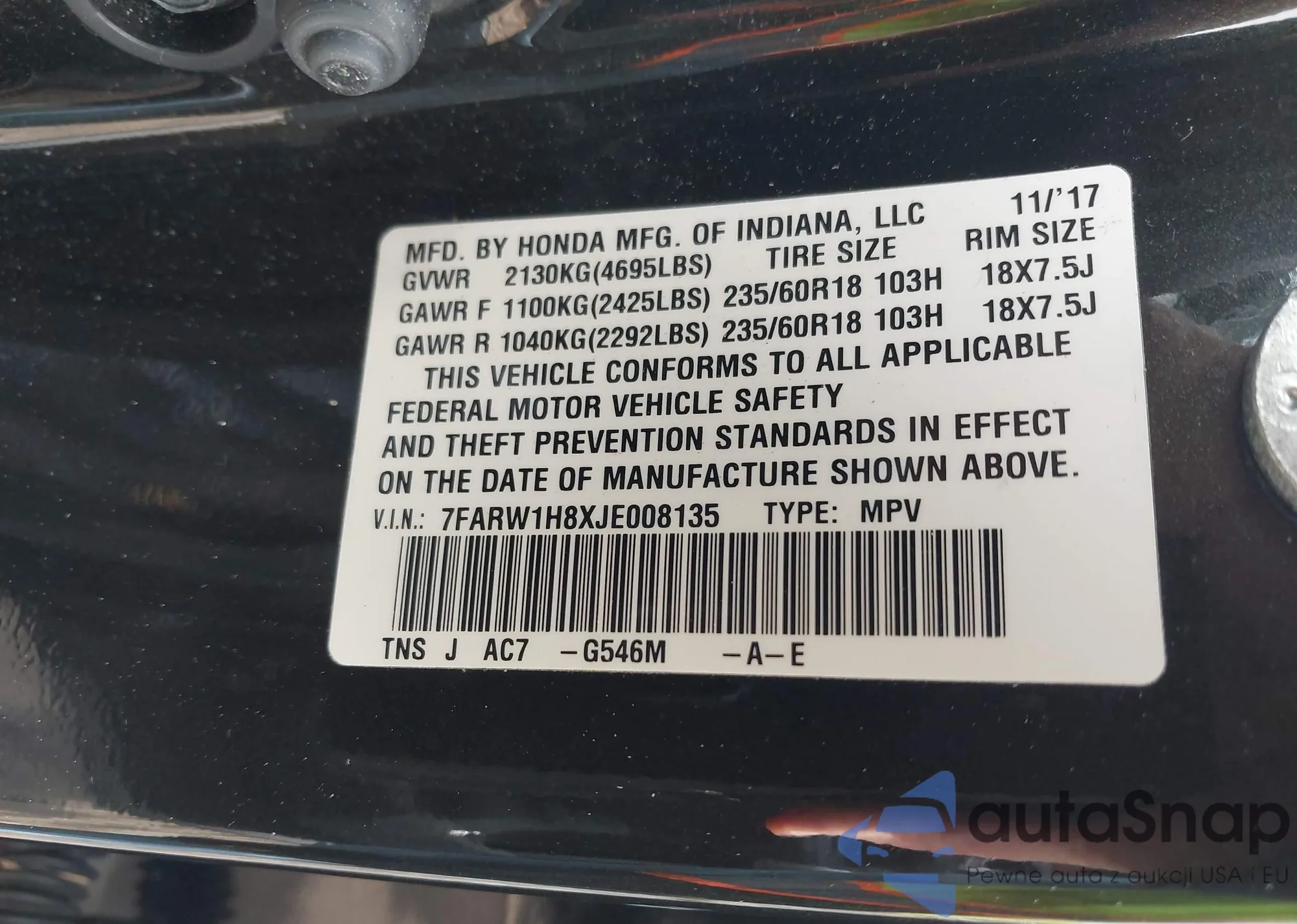 VIN: 7FARW1H8XJE008135
