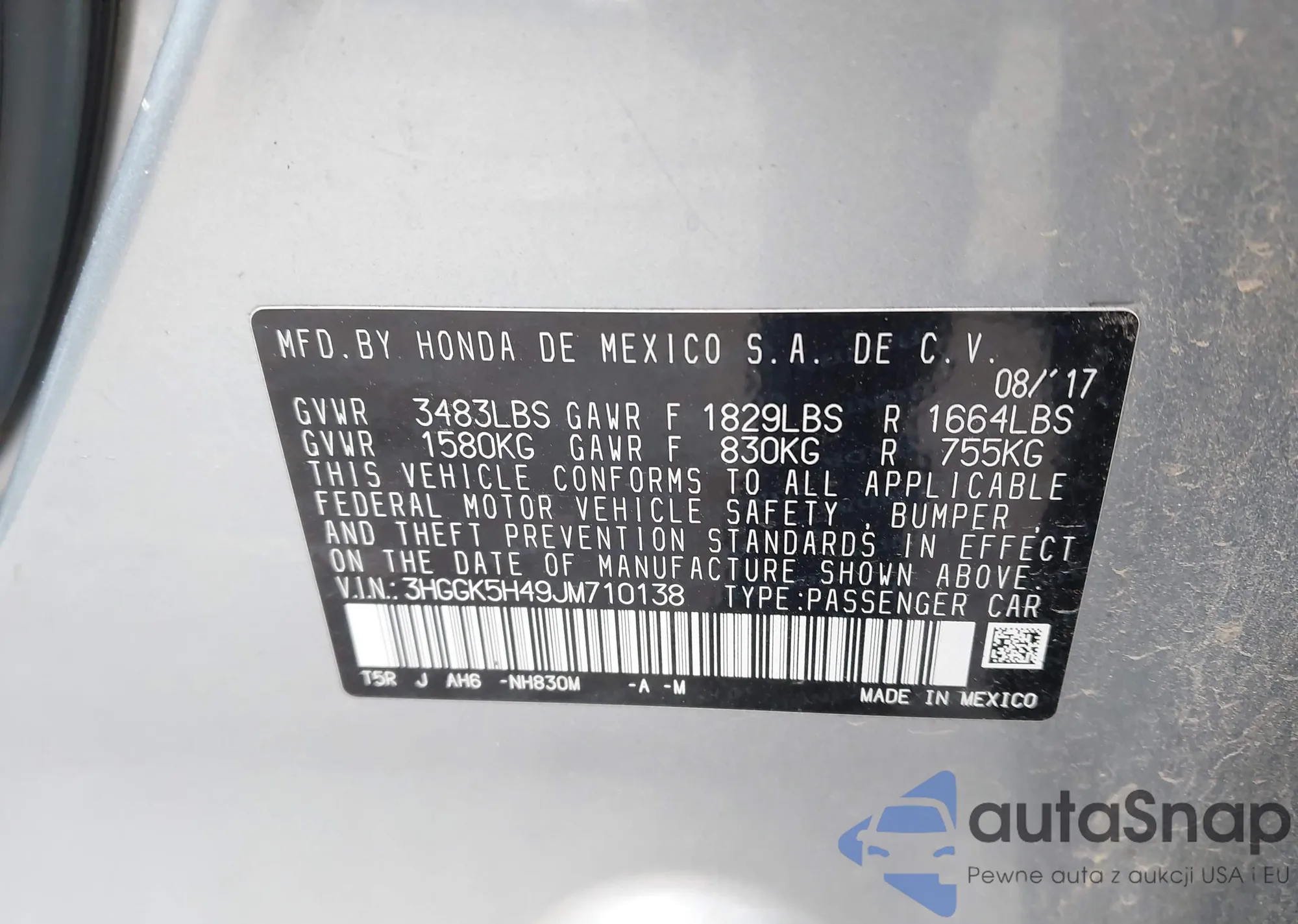 • VIN: 3HGGK5H49JM710138