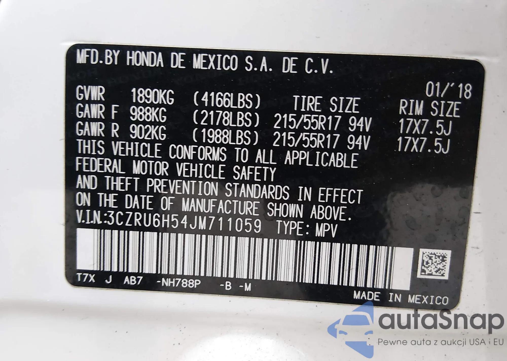VIN: 3CZRU6H54JM711059