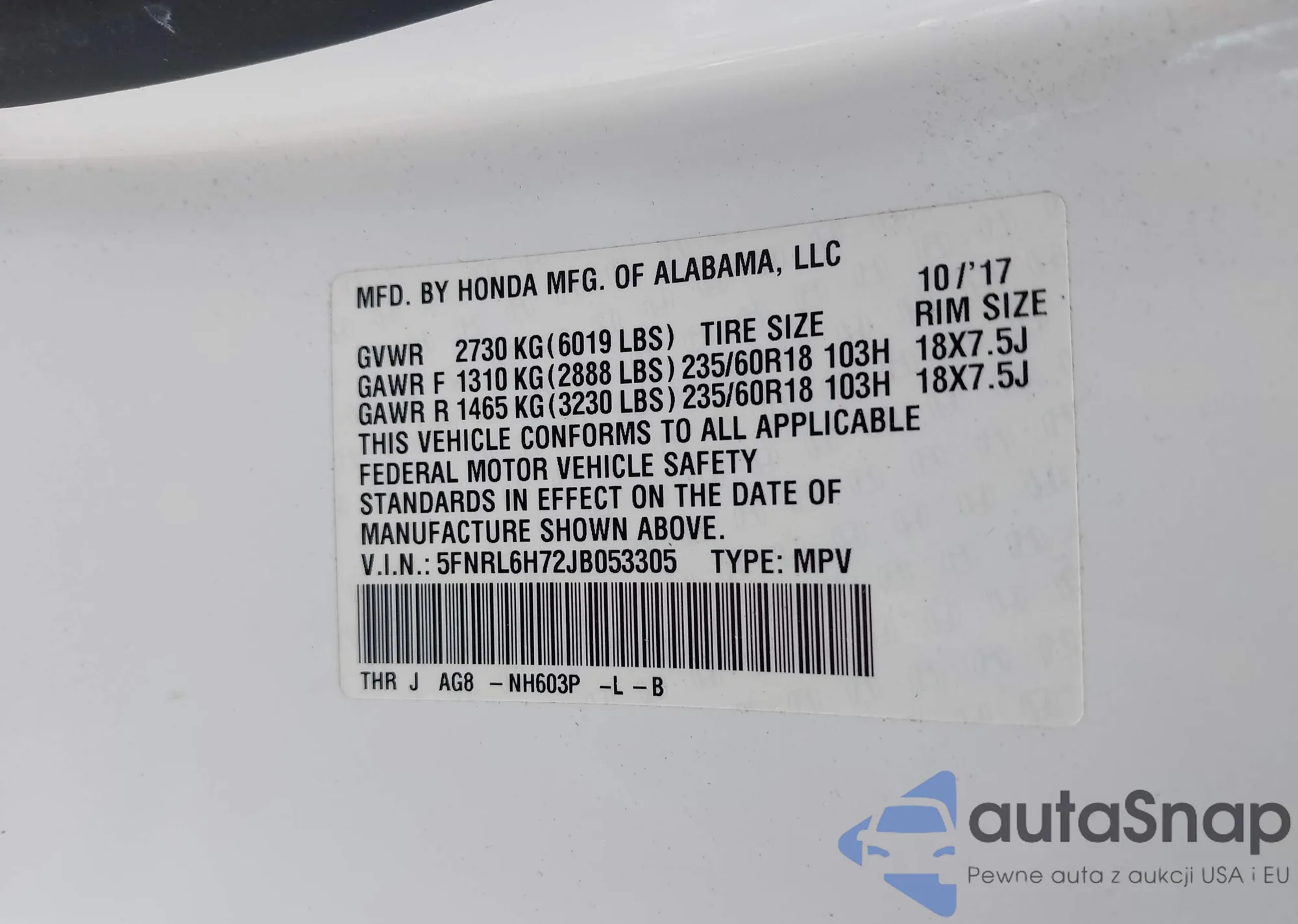 VIN: 5FNRL6H72JB053305