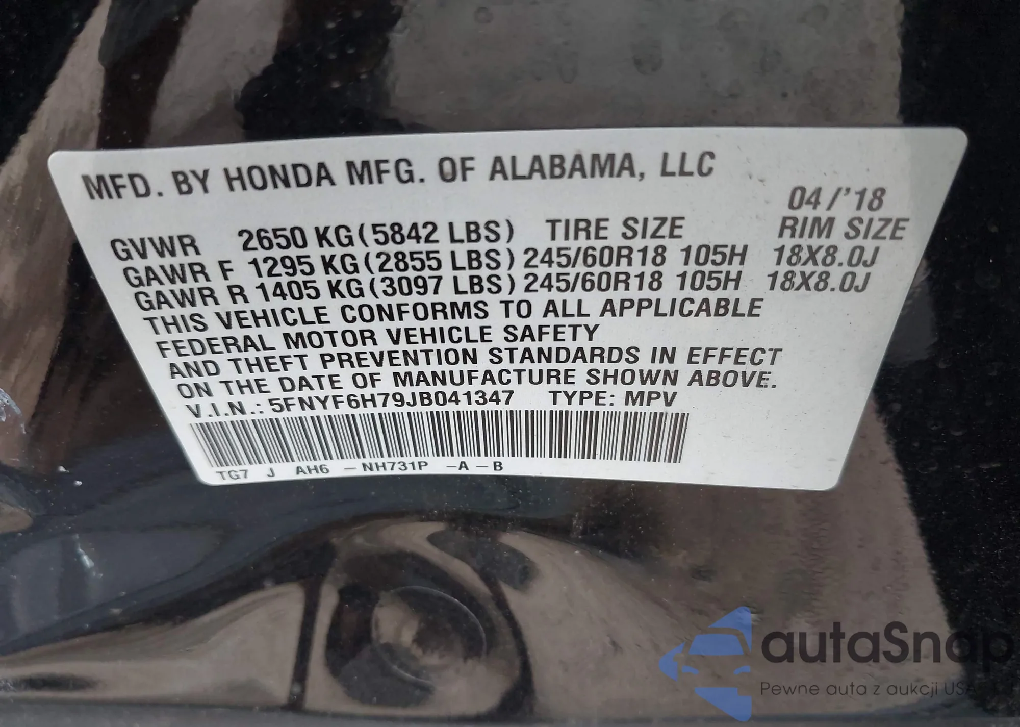 VIN: 5FNYF6H79JB041347