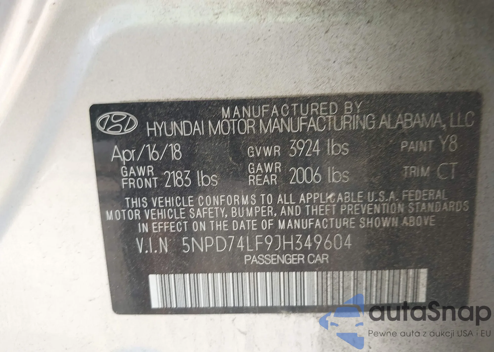 VIN: 5NPD74LF9JH349604