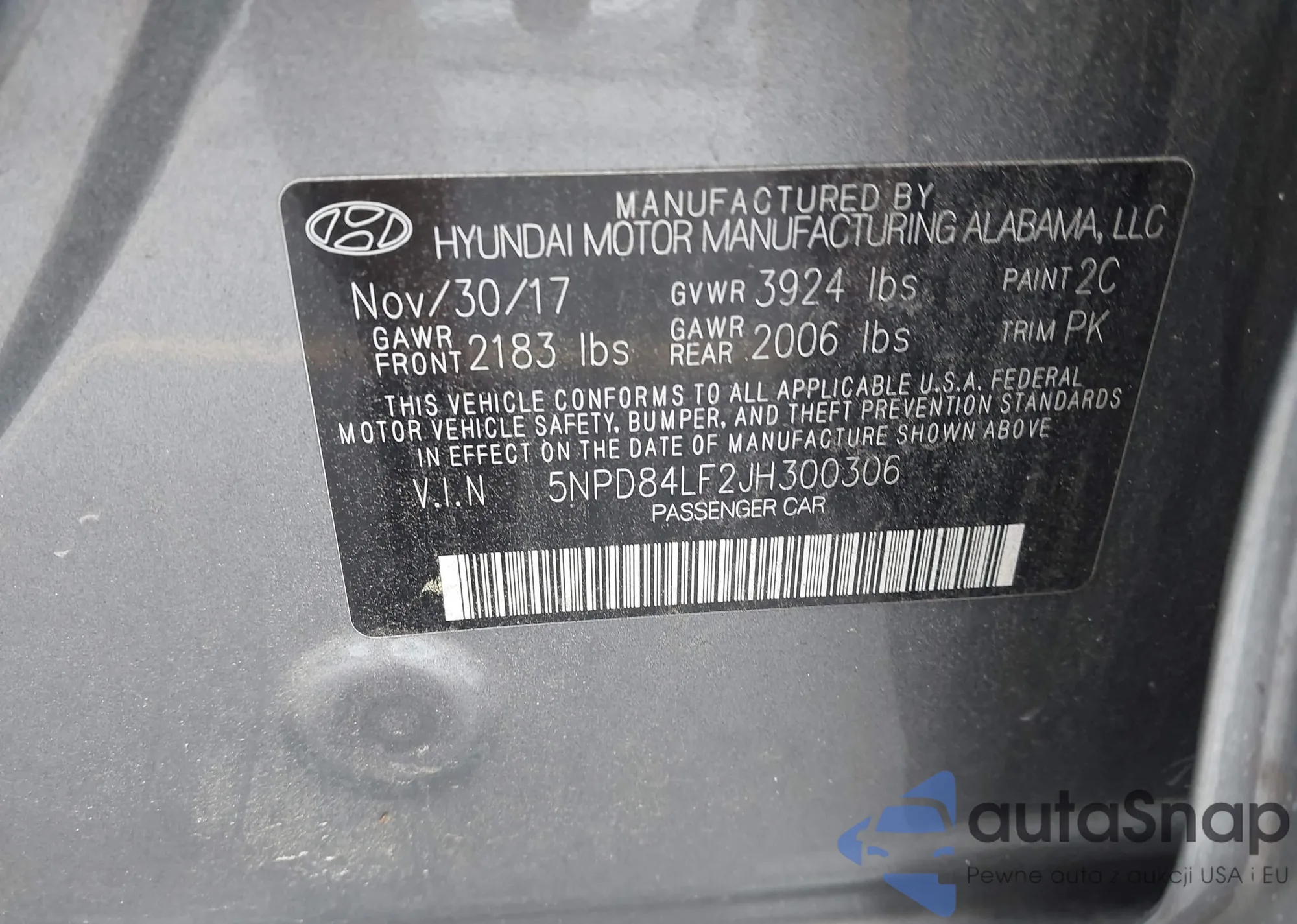 VIN: 5NPD84LF2JH300306