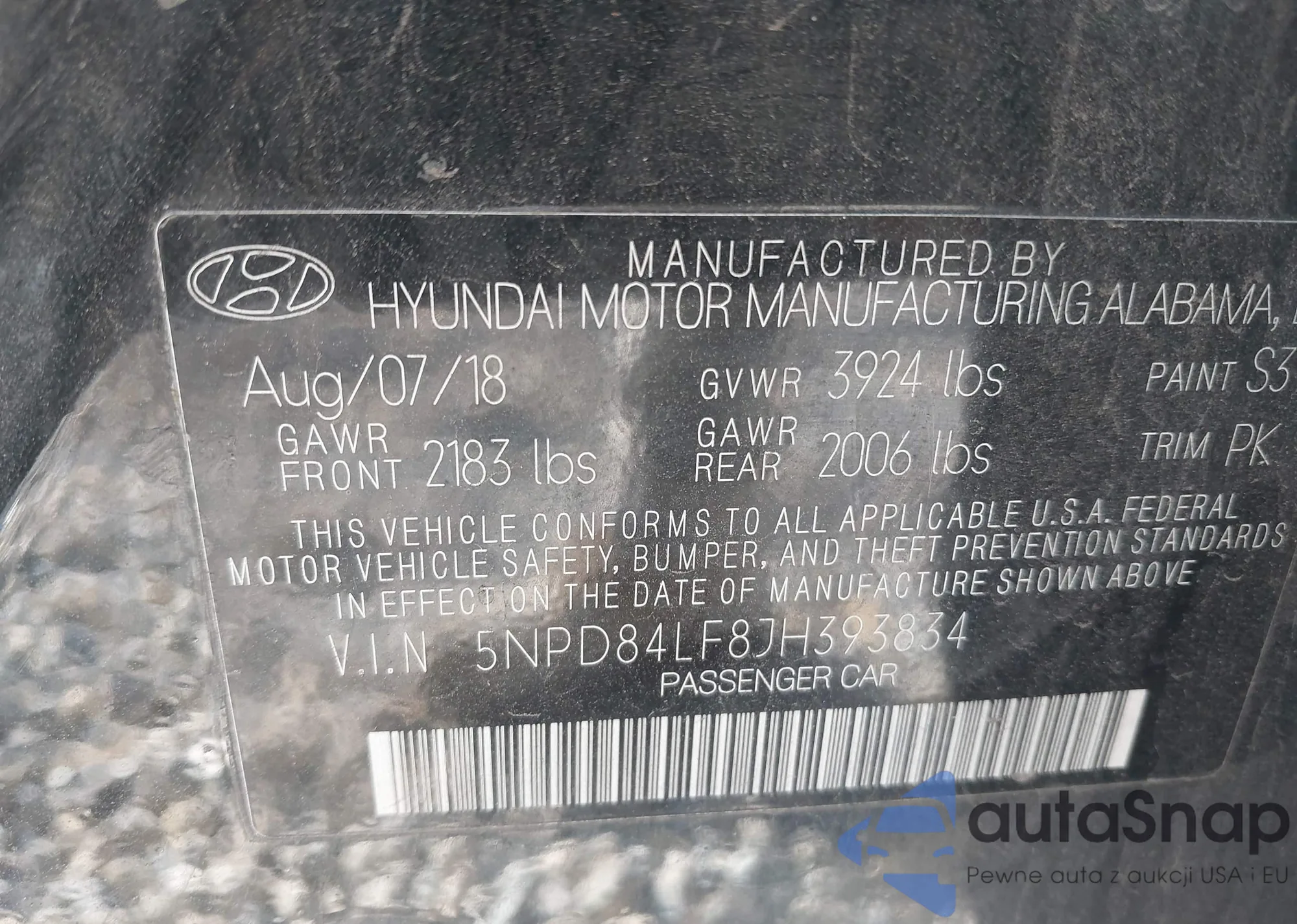 • VIN: 5NPD84LF8JH393834