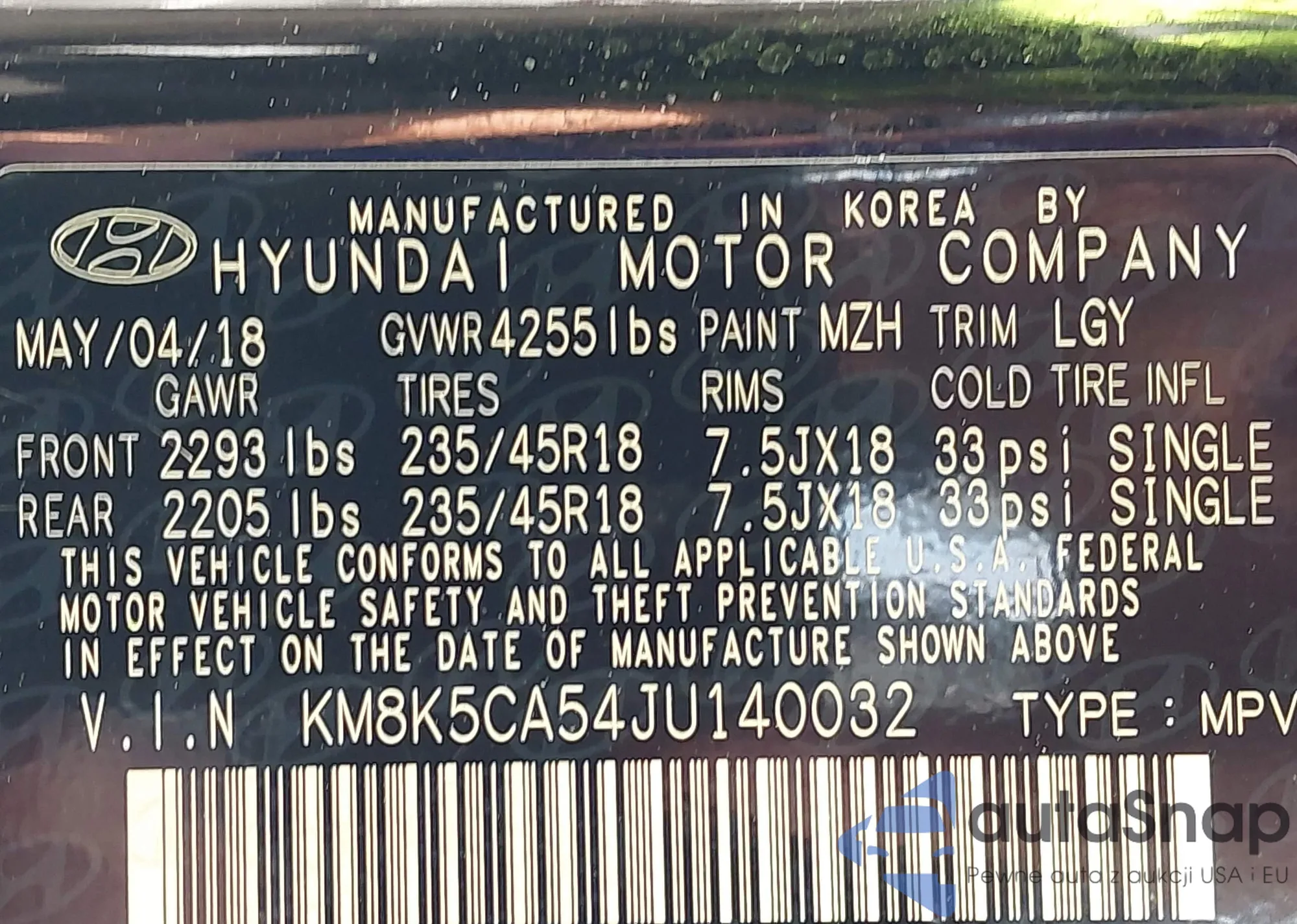 VIN: KM8K5CA54JU140032