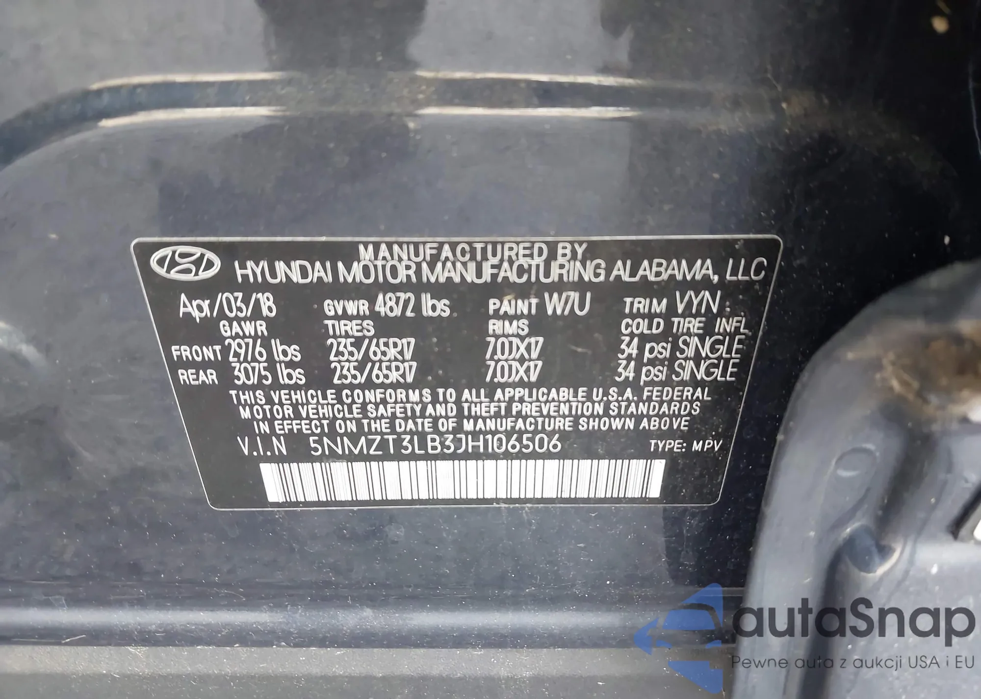 VIN: 5NMZT3LB3JH106506