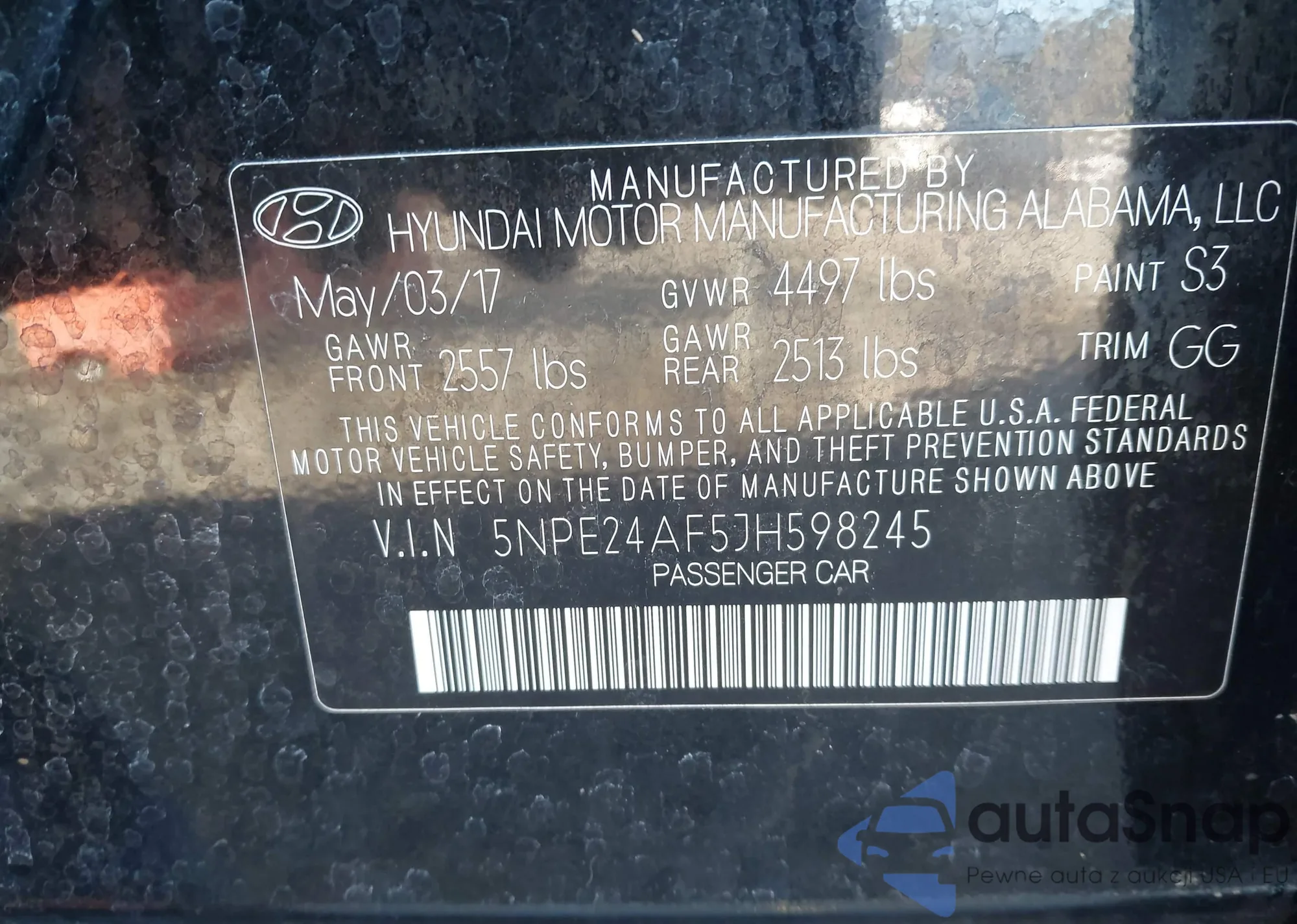 VIN: 5NPE24AF5JH598245