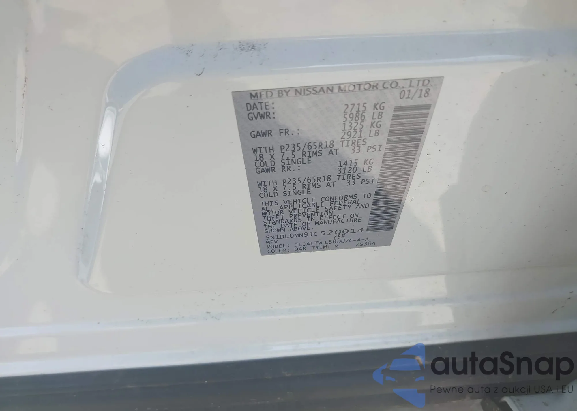 VIN: 5N1DL0MN9JC520014