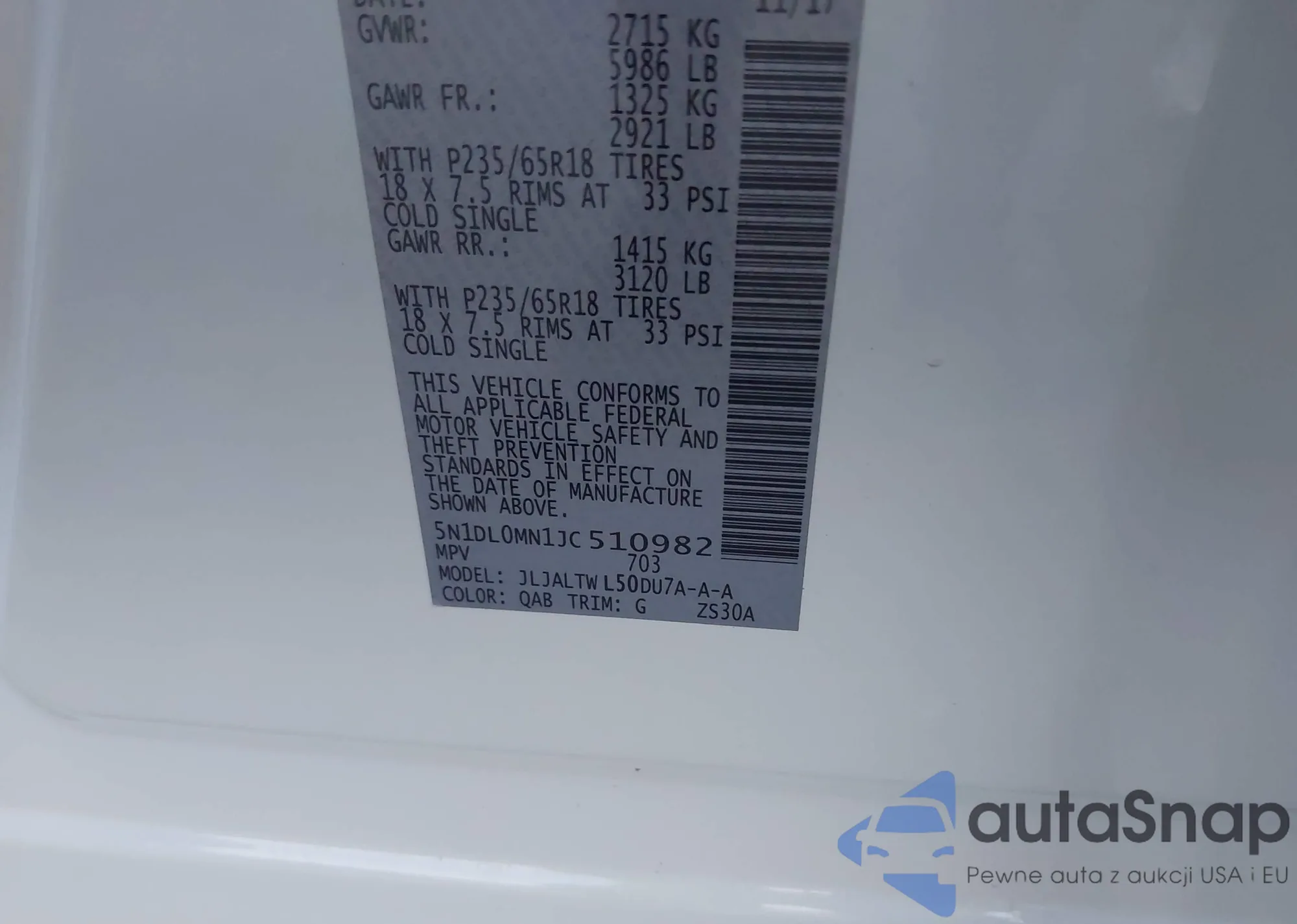 VIN: 5N1DL0MN1JC510982