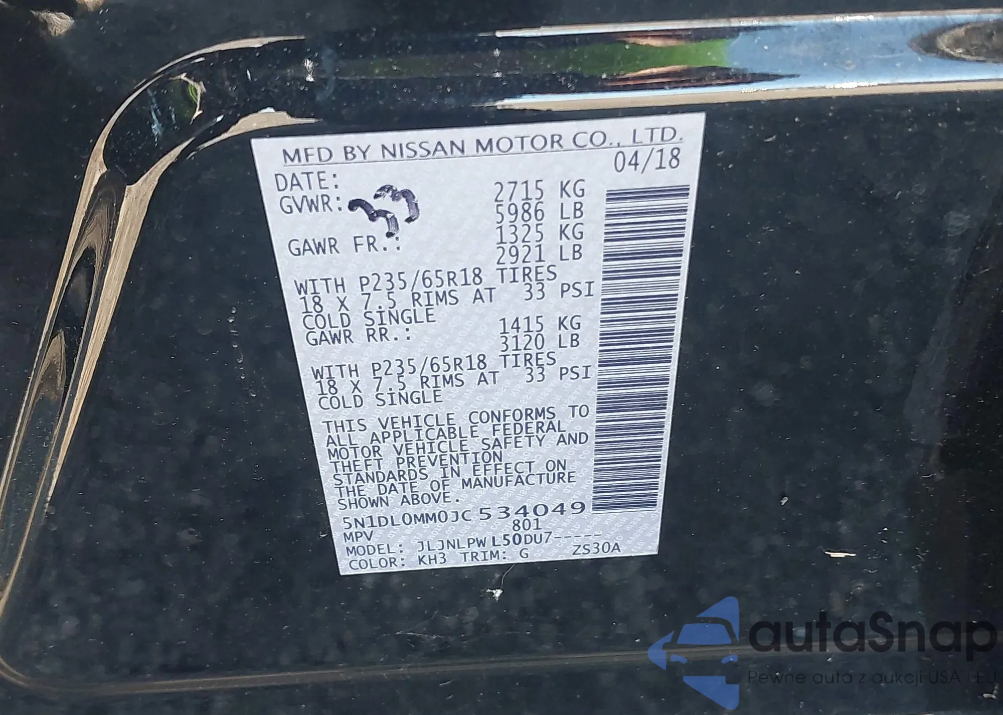 VIN: 5N1DL0MM0JC534049
