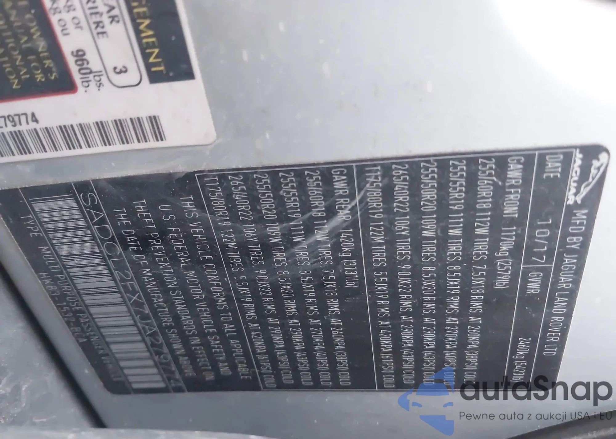 Samochód Jaguar F-Pace 2018 (VIN SADCL2FX7JA279774) nie był wcześniej licytowany. Dokumenty są czyste, przebieg odpowiada lub jest niższy niż średnia rynku. Sprzedaje go firma ubezpieczeniowa – polecamy zakup. Dostawa do portu zajmie ok. 6–8 tygodni.