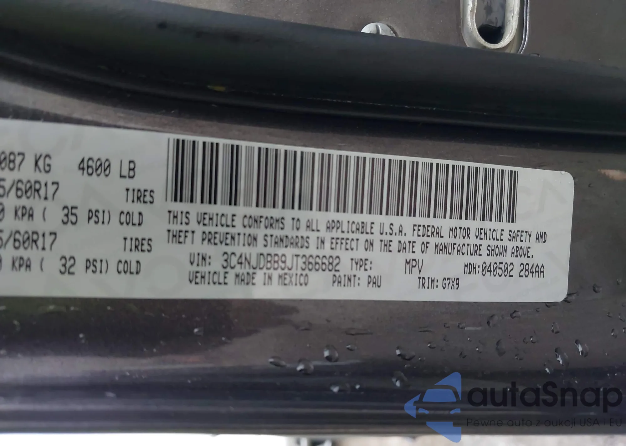 VIN: 3C4NJDBB9JT366682