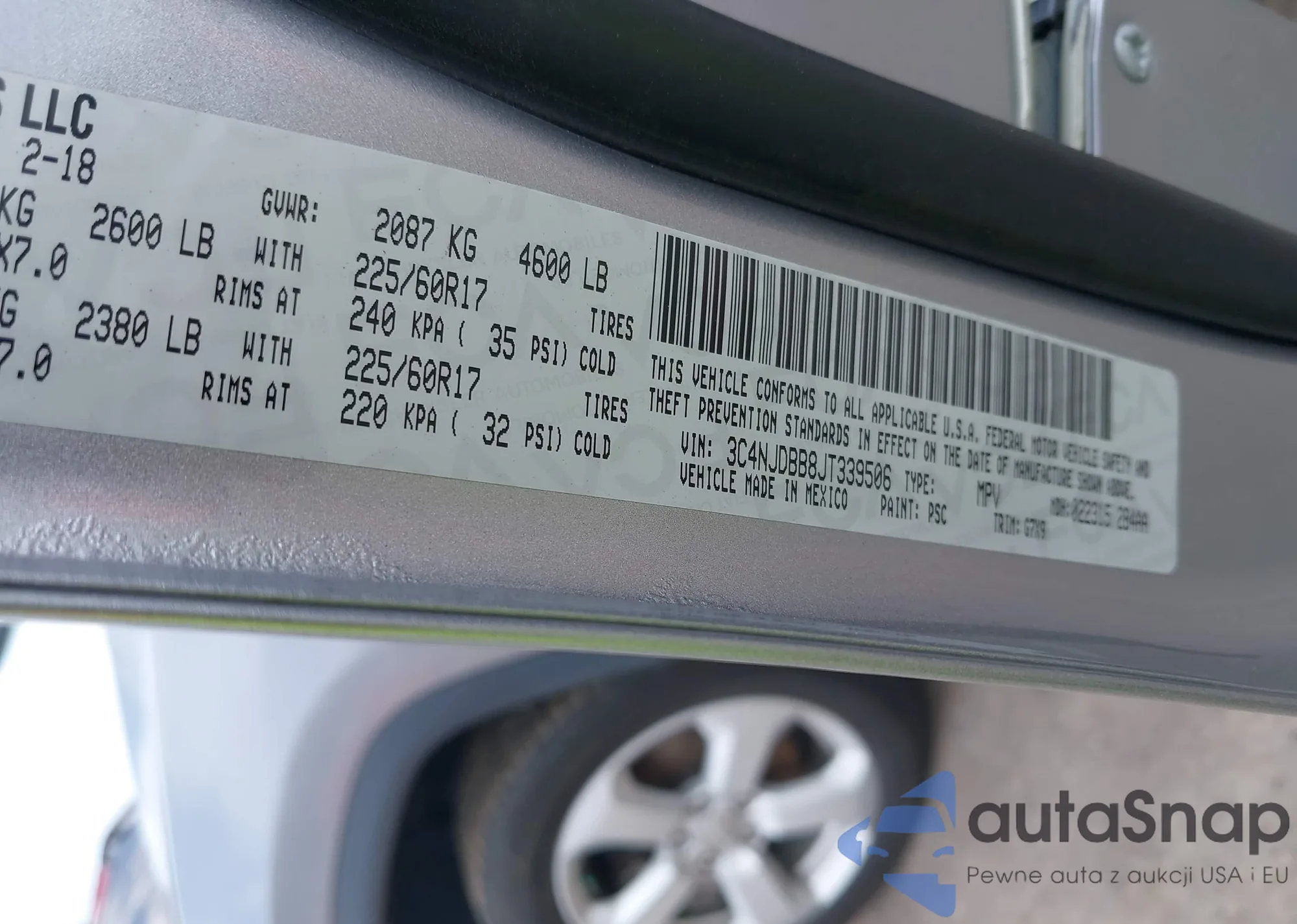 VIN: 3C4NJDBB8JT339506