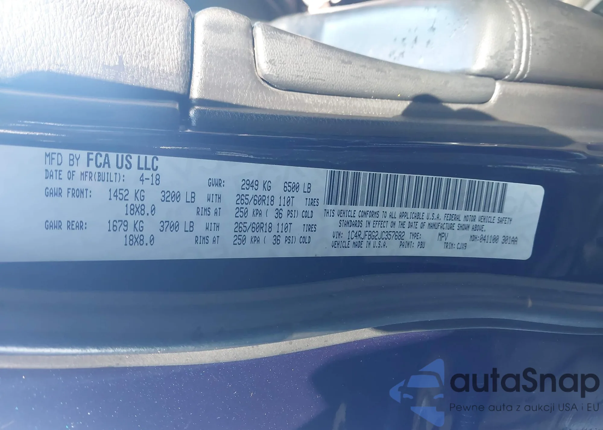 VIN: 1C4RJFBG2JC357682
