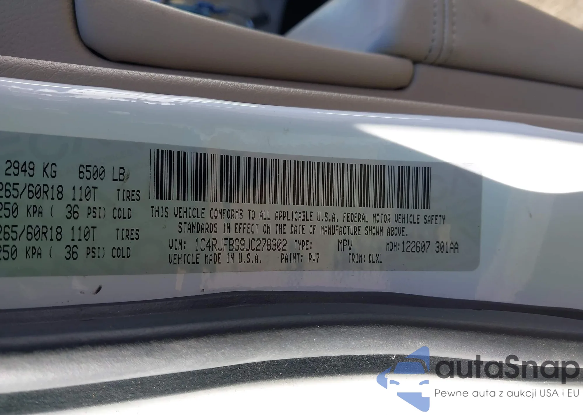 • VIN: 1C4RJFBG9JC278302