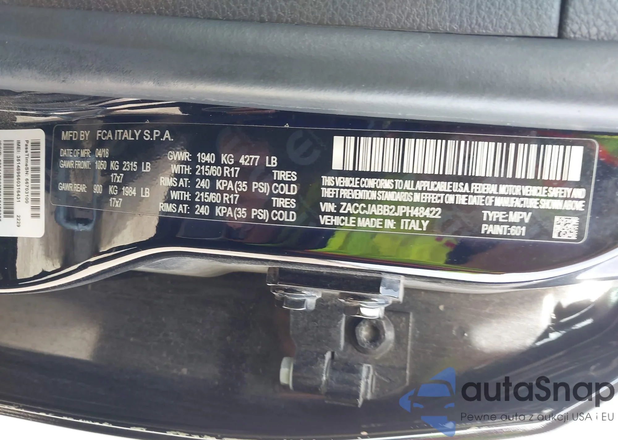 Samochód Jeep Renegade 2018 (VIN ZACCJABB2JPH48422) nie był wcześniej licytowany. Dokumenty są czyste, przebieg odpowiada lub jest niższy niż średnia rynku. Sprzedaje go firma ubezpieczeniowa – polecamy zakup. Dostawa do portu zajmie ok. 6–8 tygodni.