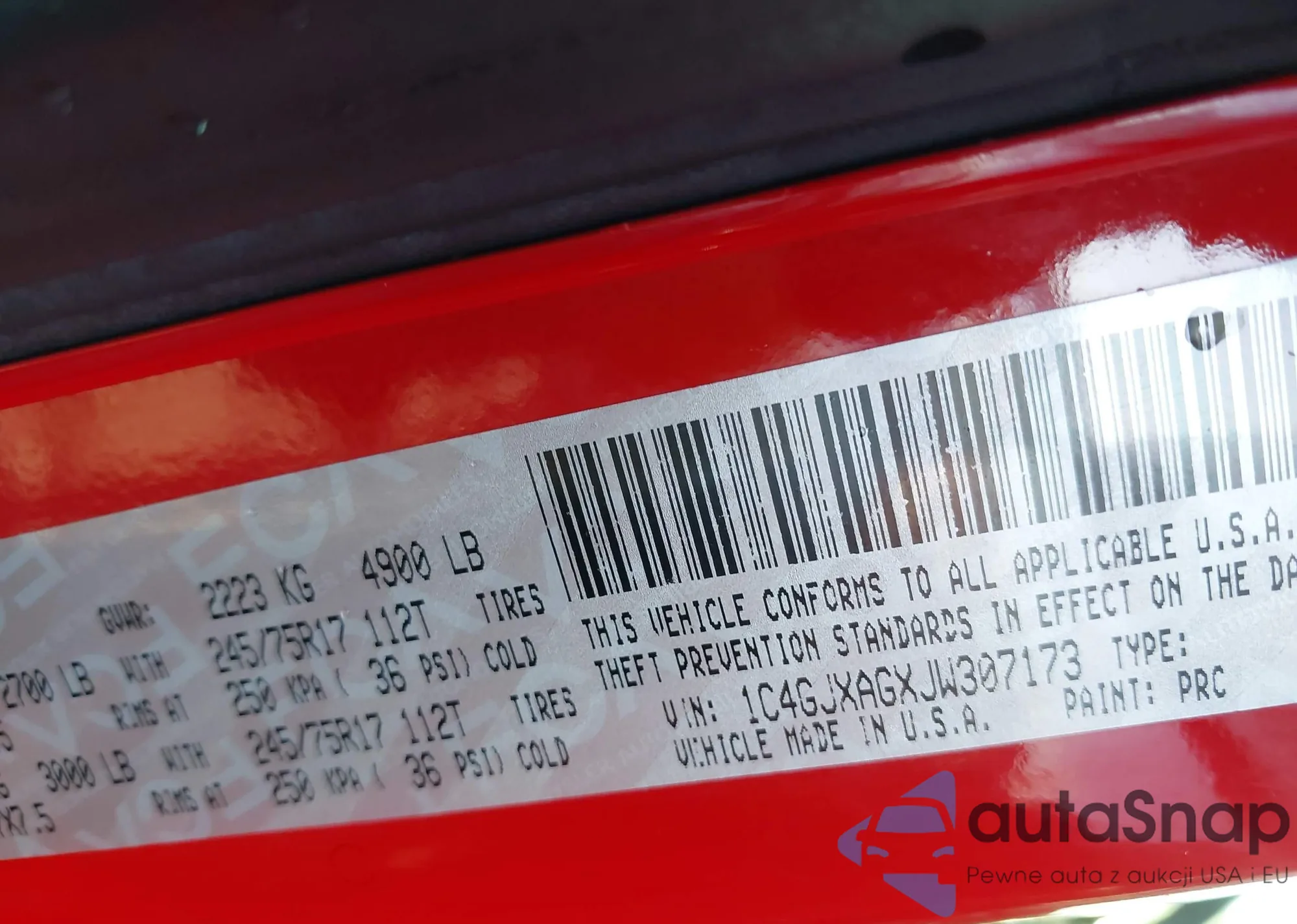VIN: 1C4GJXAGXJW307173