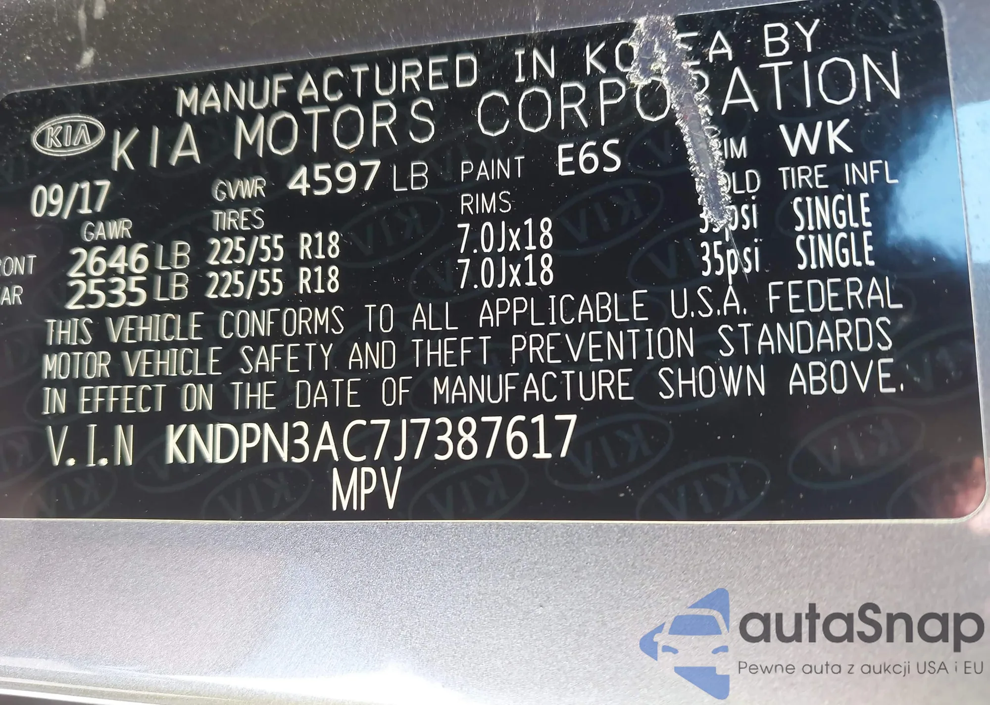 VIN: KNDPN3AC7J7387617