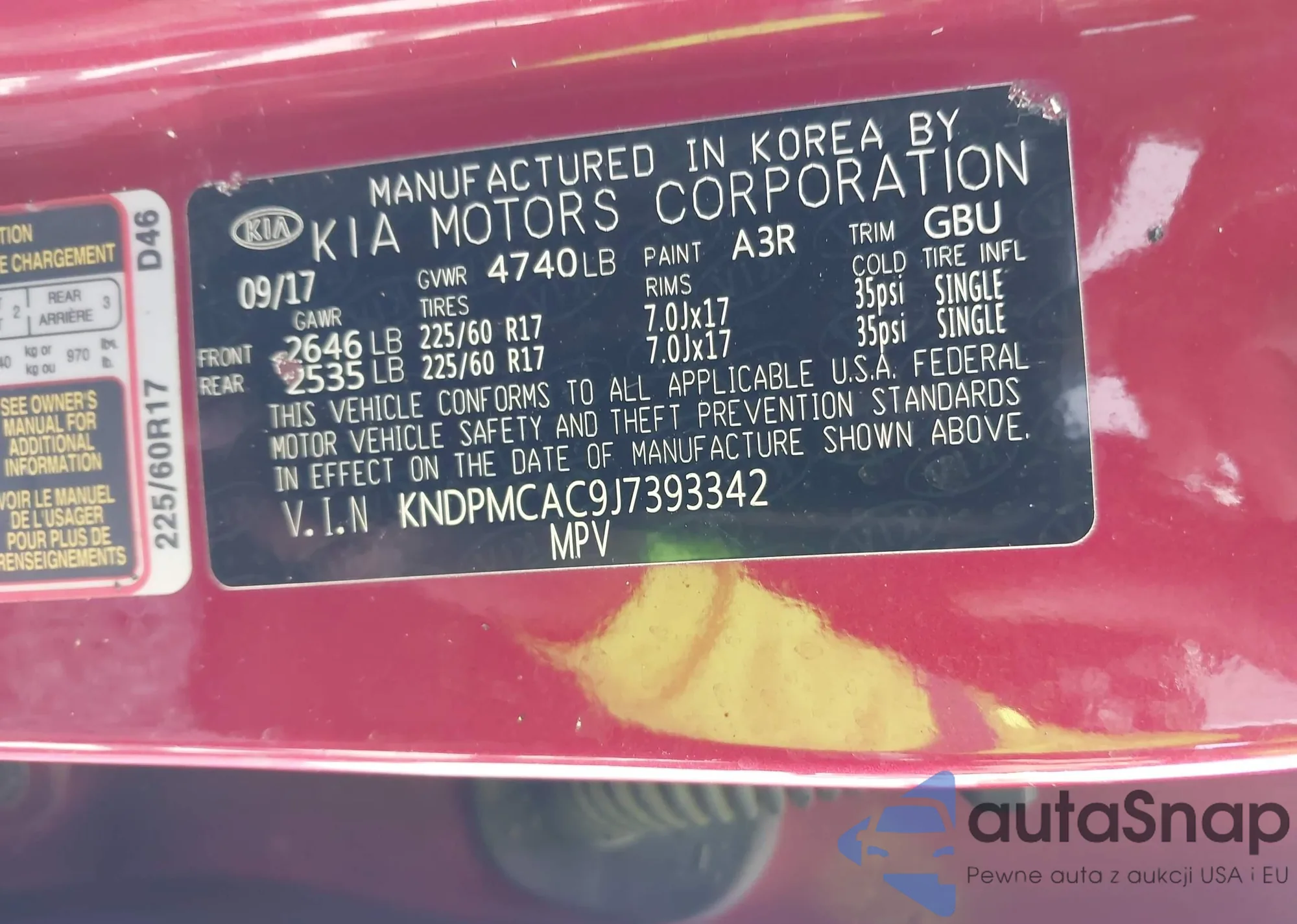 • VIN: KNDPMCAC9J7393342