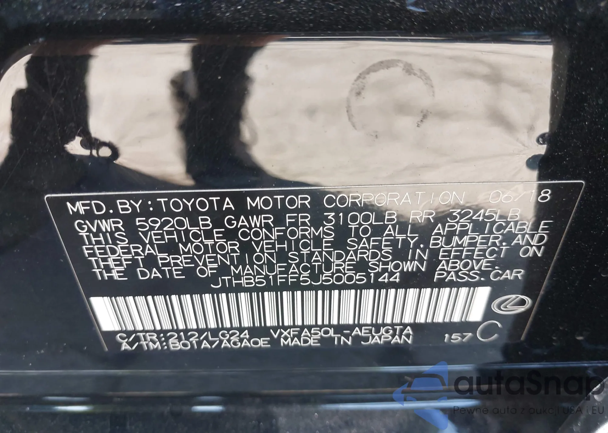 Samochód Lexus LS 2018 (VIN JTHB51FF5J5005144) ma dokumenty uniemożliwiające rejestrację. Mogą pojawić się trudności przy eksporcie i rejestracji. Skontaktuj się z ekspertami AutaSnap w celu znalezienia alternatywy.