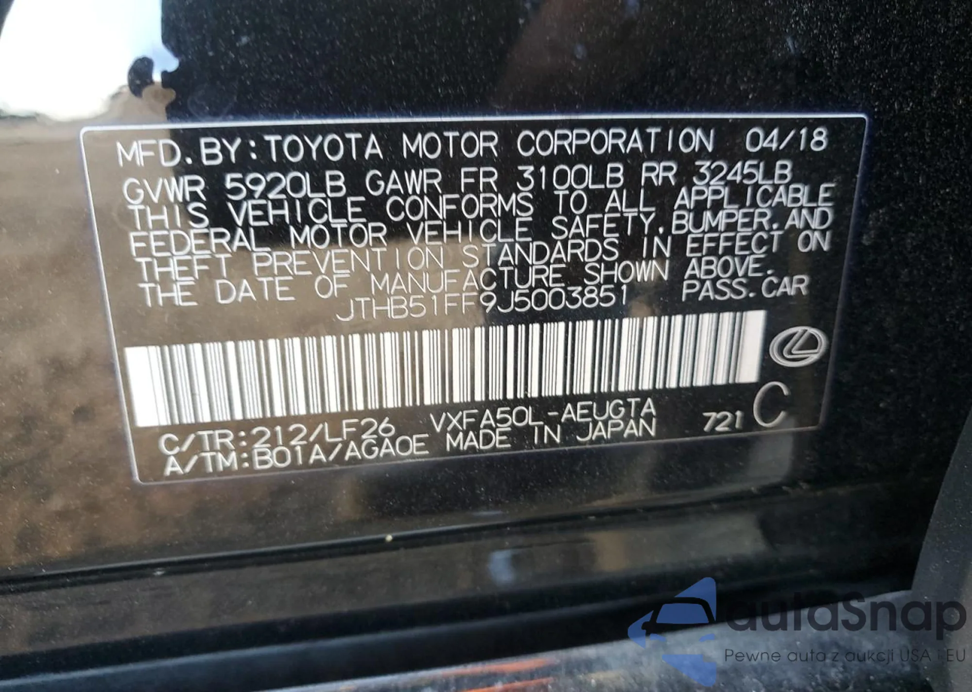 VIN: JTHB51FF9J5003851