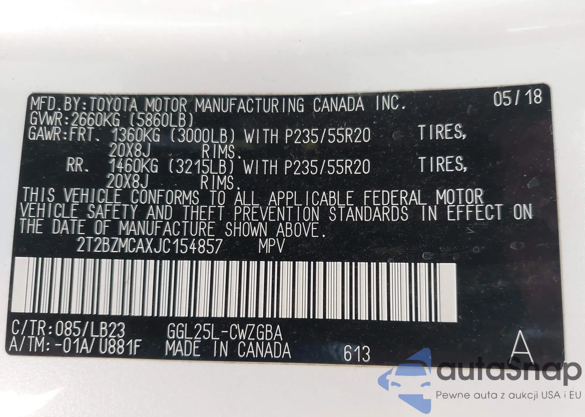 VIN: 2T2BZMCAXJC154857