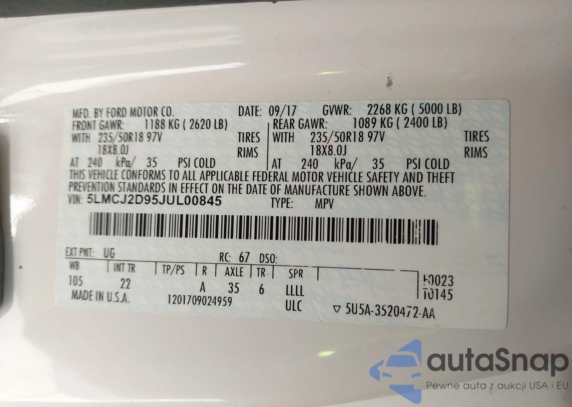 • VIN: 5LMCJ2D95JUL00845
