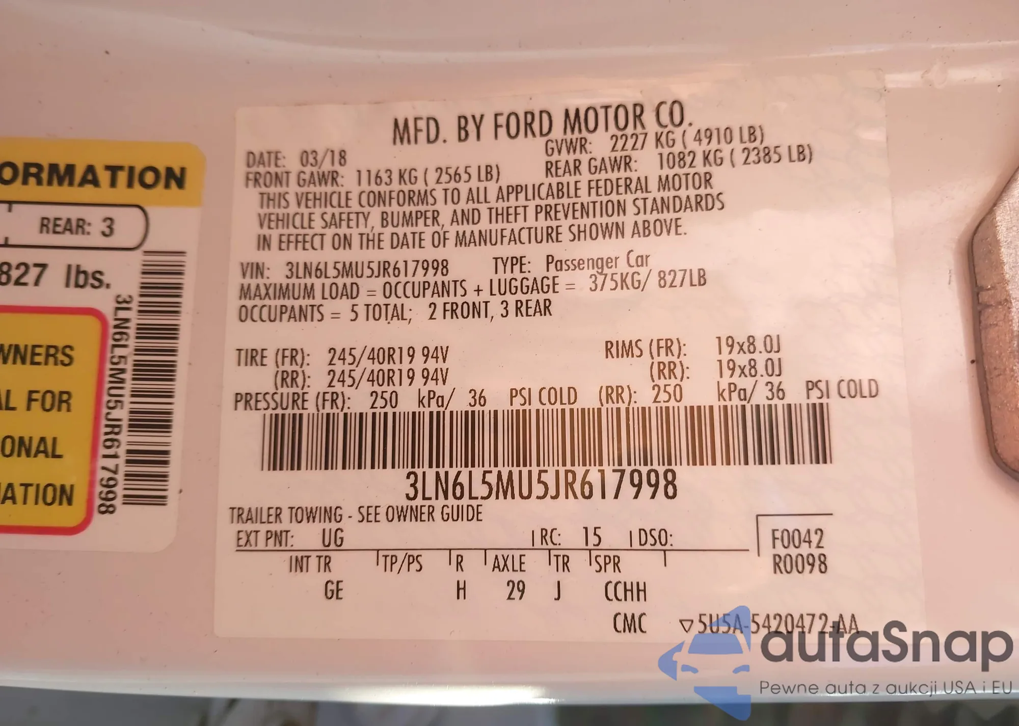 Samochód Lincoln MKZ 2018 (VIN 3LN6L5MU5JR617998) ma dokumenty uniemożliwiające rejestrację. Mogą pojawić się trudności przy eksporcie i rejestracji. Skontaktuj się z ekspertami AutaSnap w celu znalezienia alternatywy.