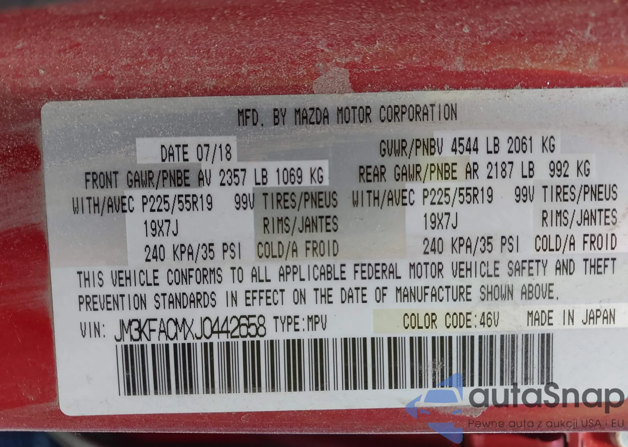 VIN: JM3KFACMXJ0442658