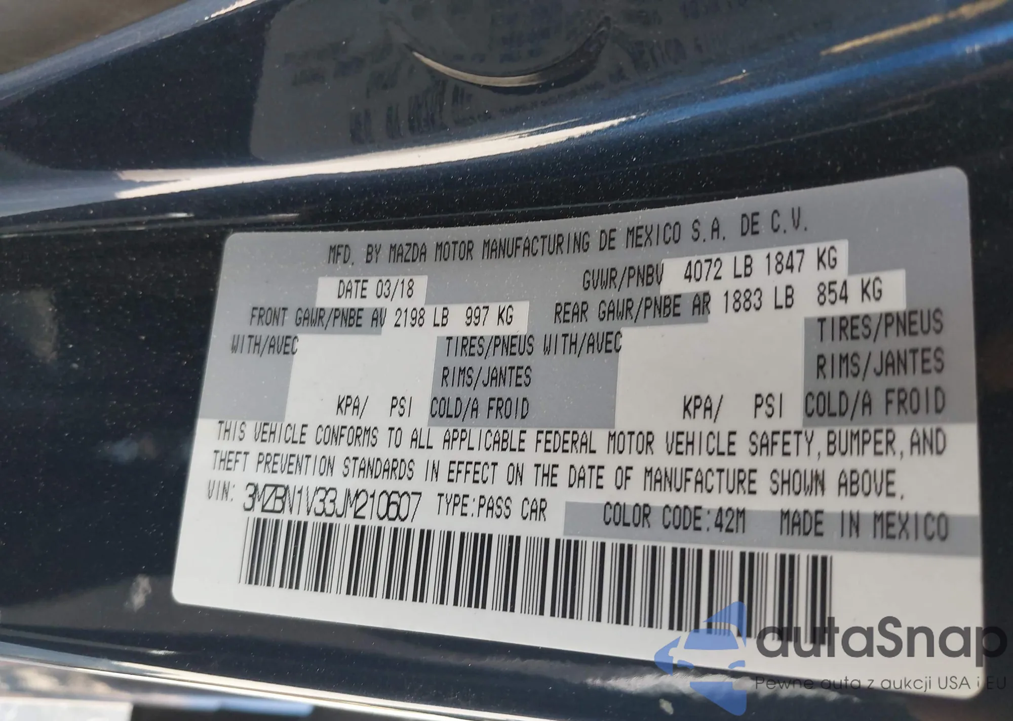 VIN: 3MZBN1V33JM210607