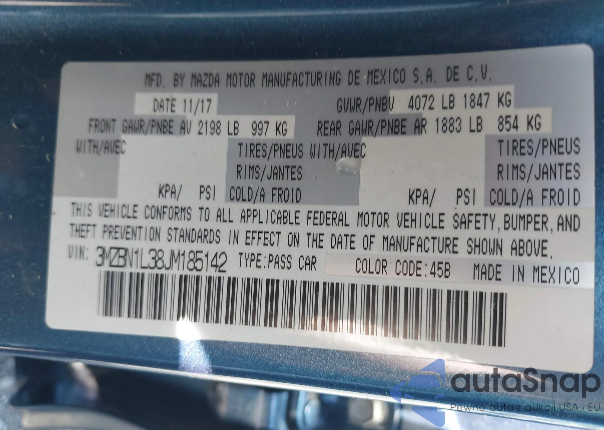 VIN: 3MZBN1L38JM185142