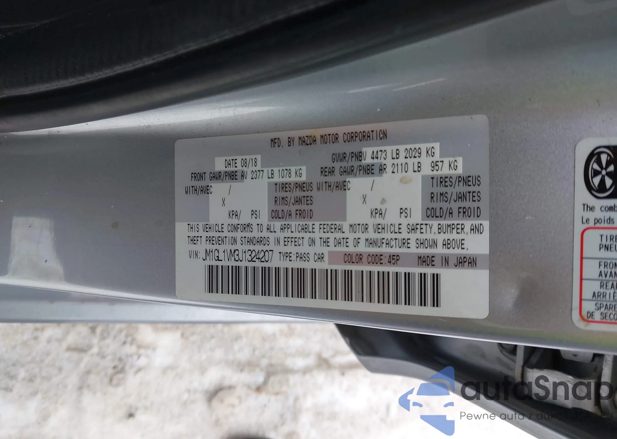 VIN: JM1GL1VM3J1324207