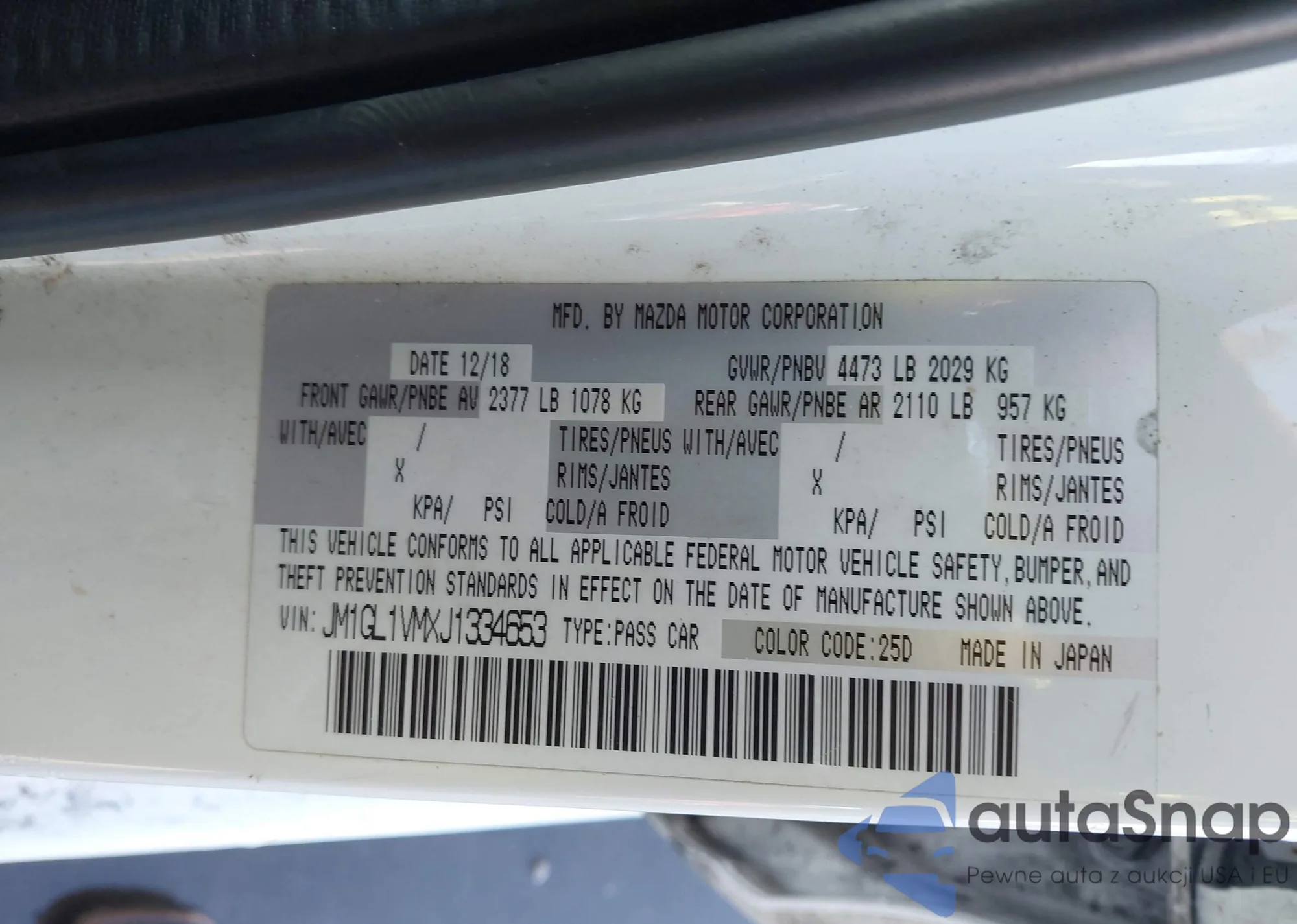 Samochód Mazda 6 2018 (VIN JM1GL1VMXJ1334653) nie był wcześniej licytowany. Dokumenty są czyste, przebieg odpowiada lub jest niższy niż średnia rynku. Sprzedaje go firma ubezpieczeniowa – polecamy zakup. Dostawa do portu zajmie ok. 6–8 tygodni.