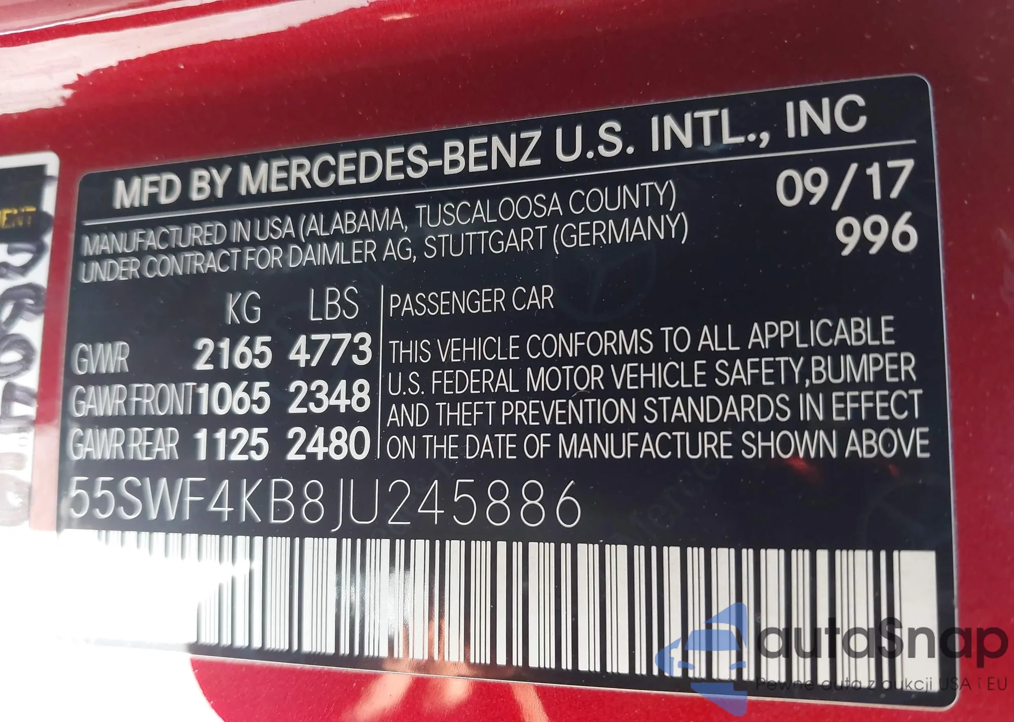 VIN: 55SWF4KB8JU245886