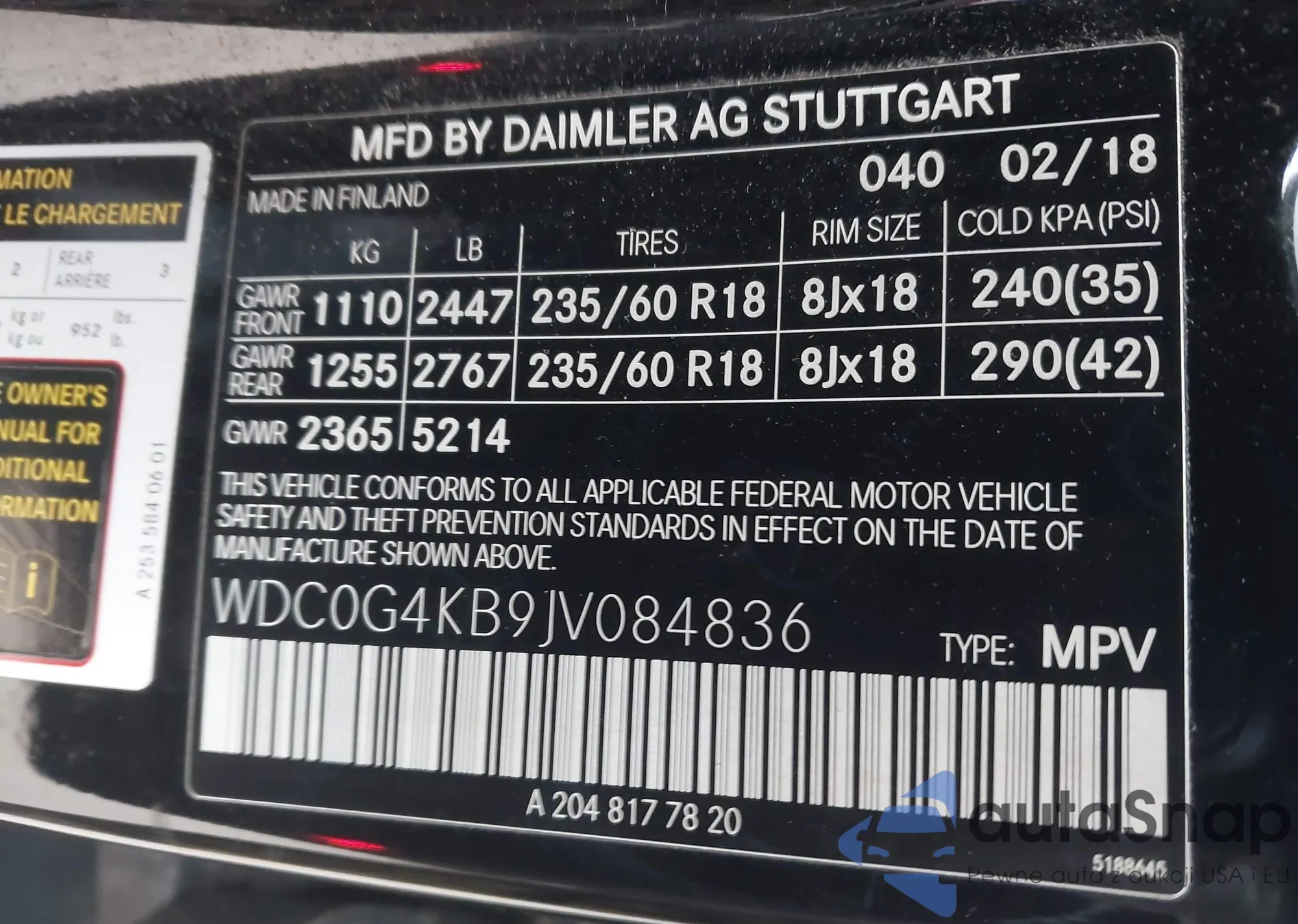 • VIN: WDC0G4KB9JV084836