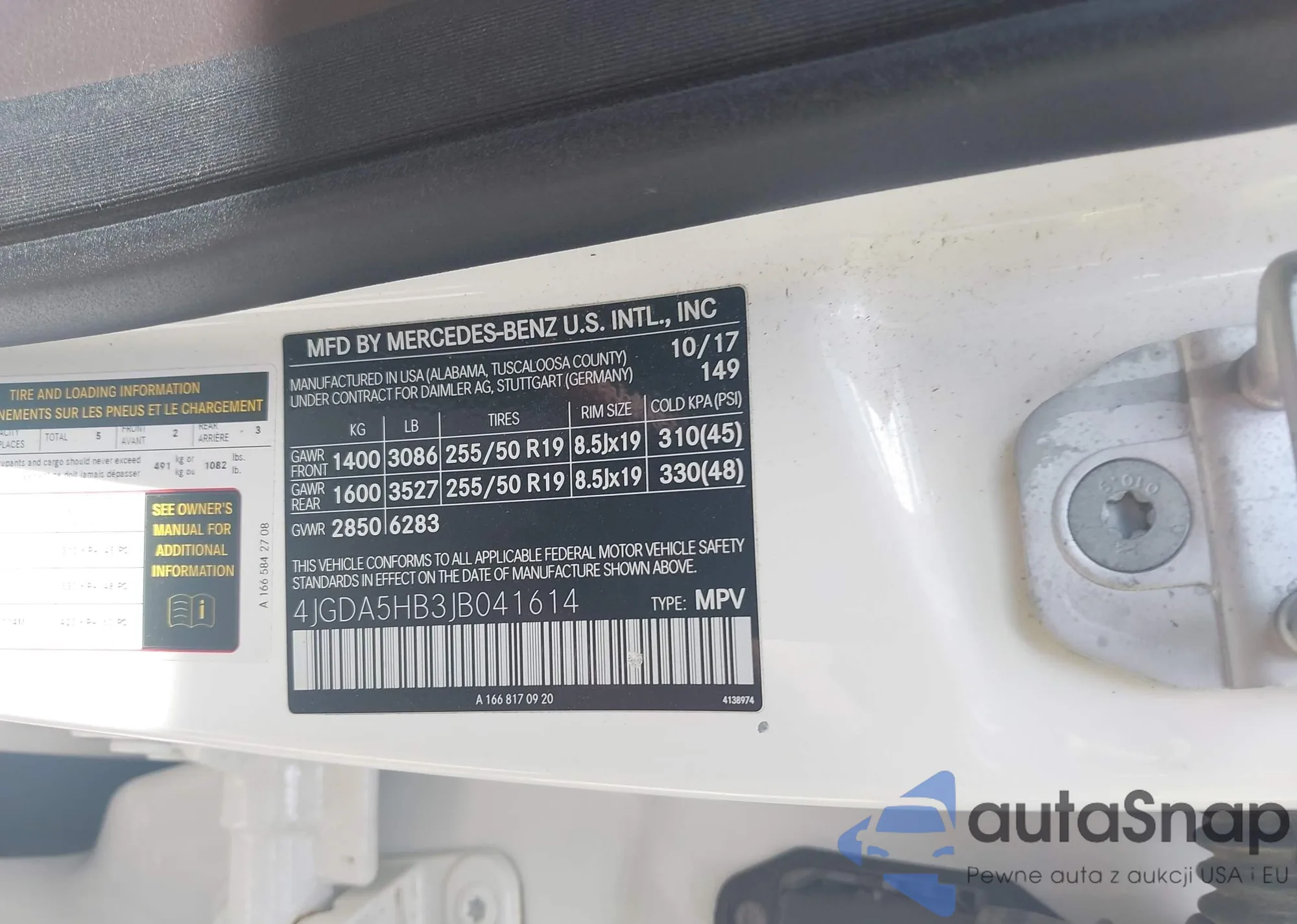 VIN: 4JGDA5HB3JB041614