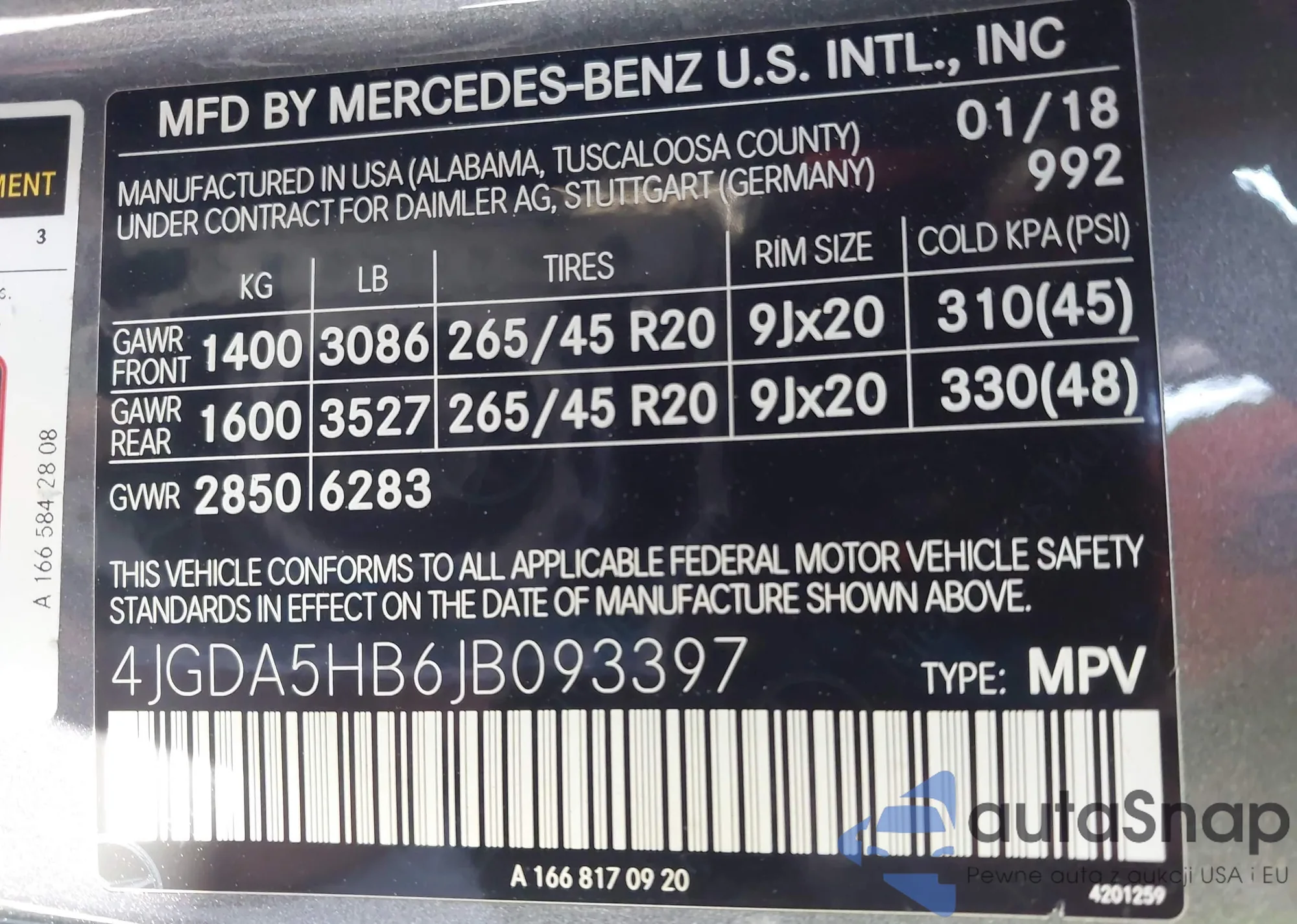 VIN: 4JGDA5HB6JB093397