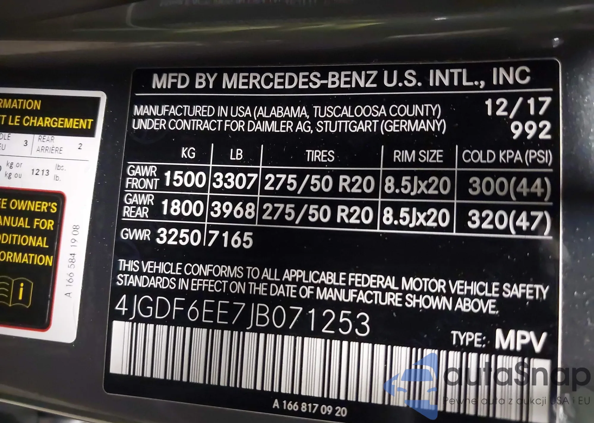 • VIN: 4JGDF6EE7JB071253