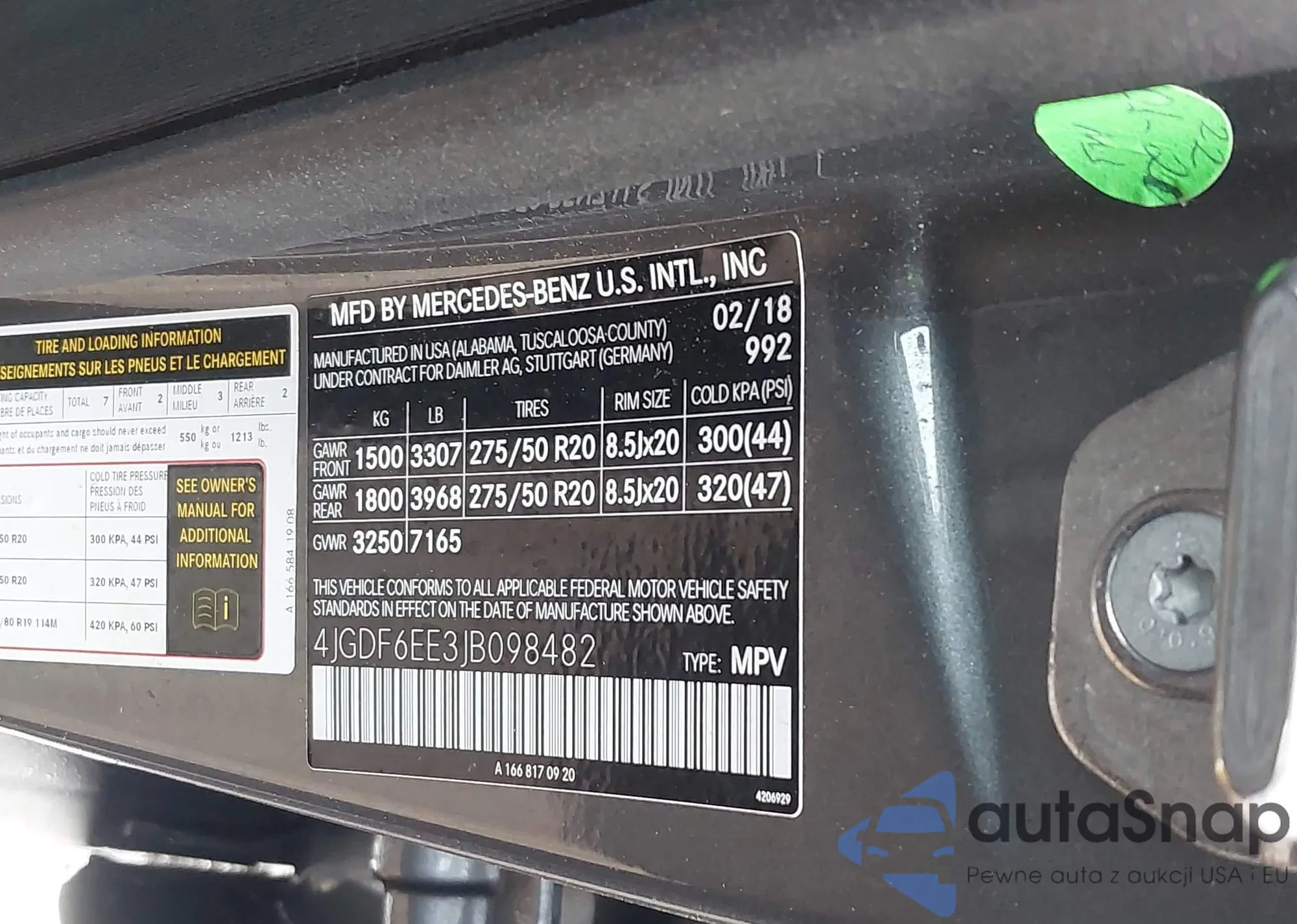 • VIN: 4JGDF6EE3JB098482