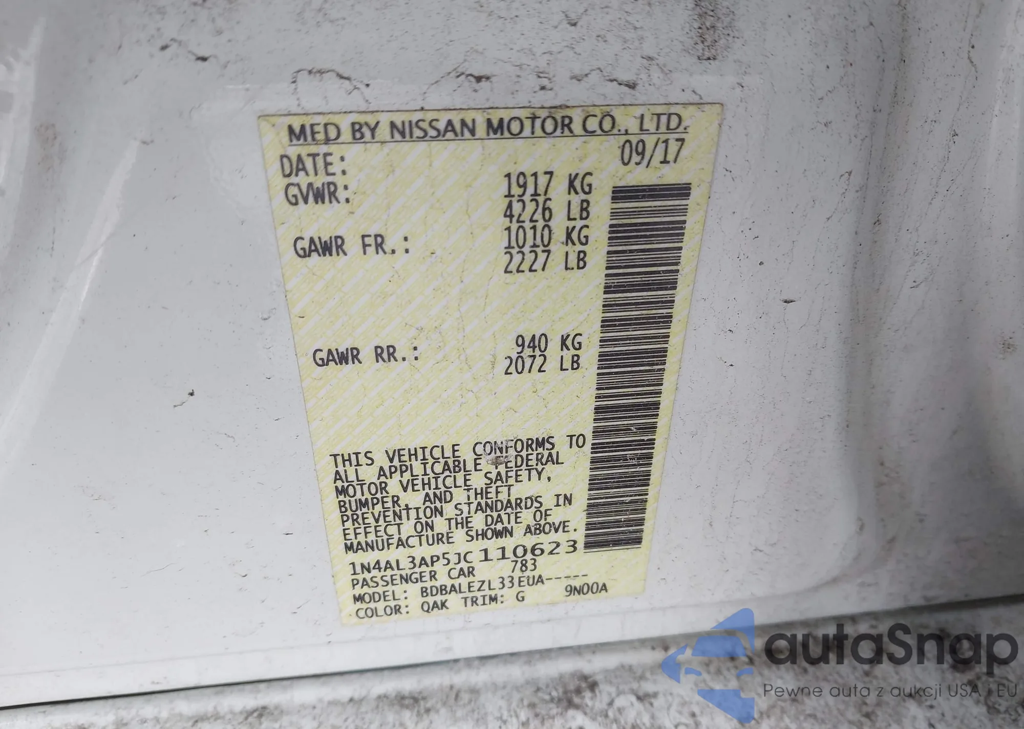 VIN: 1N4AL3AP5JC110623
