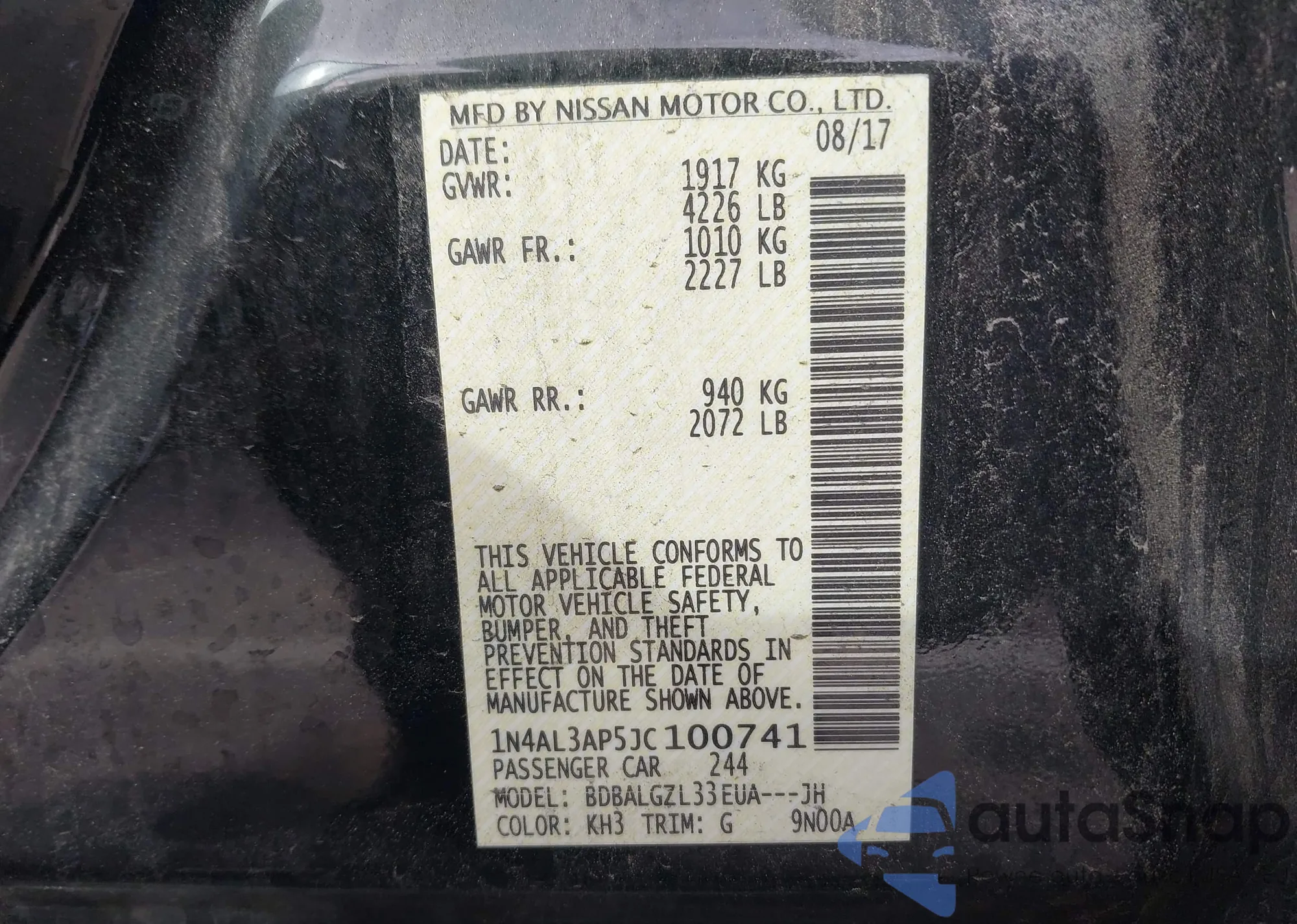 VIN: 1N4AL3AP5JC100741