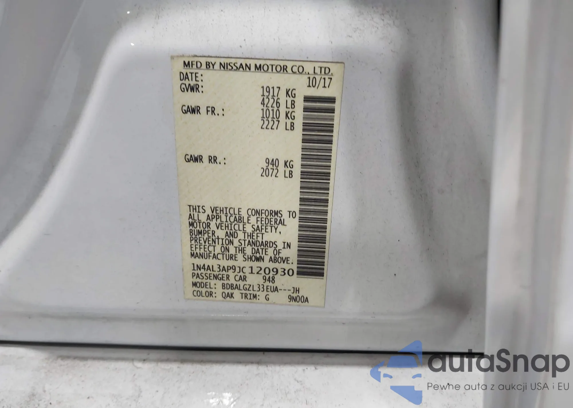 VIN: 1N4AL3AP9JC120930