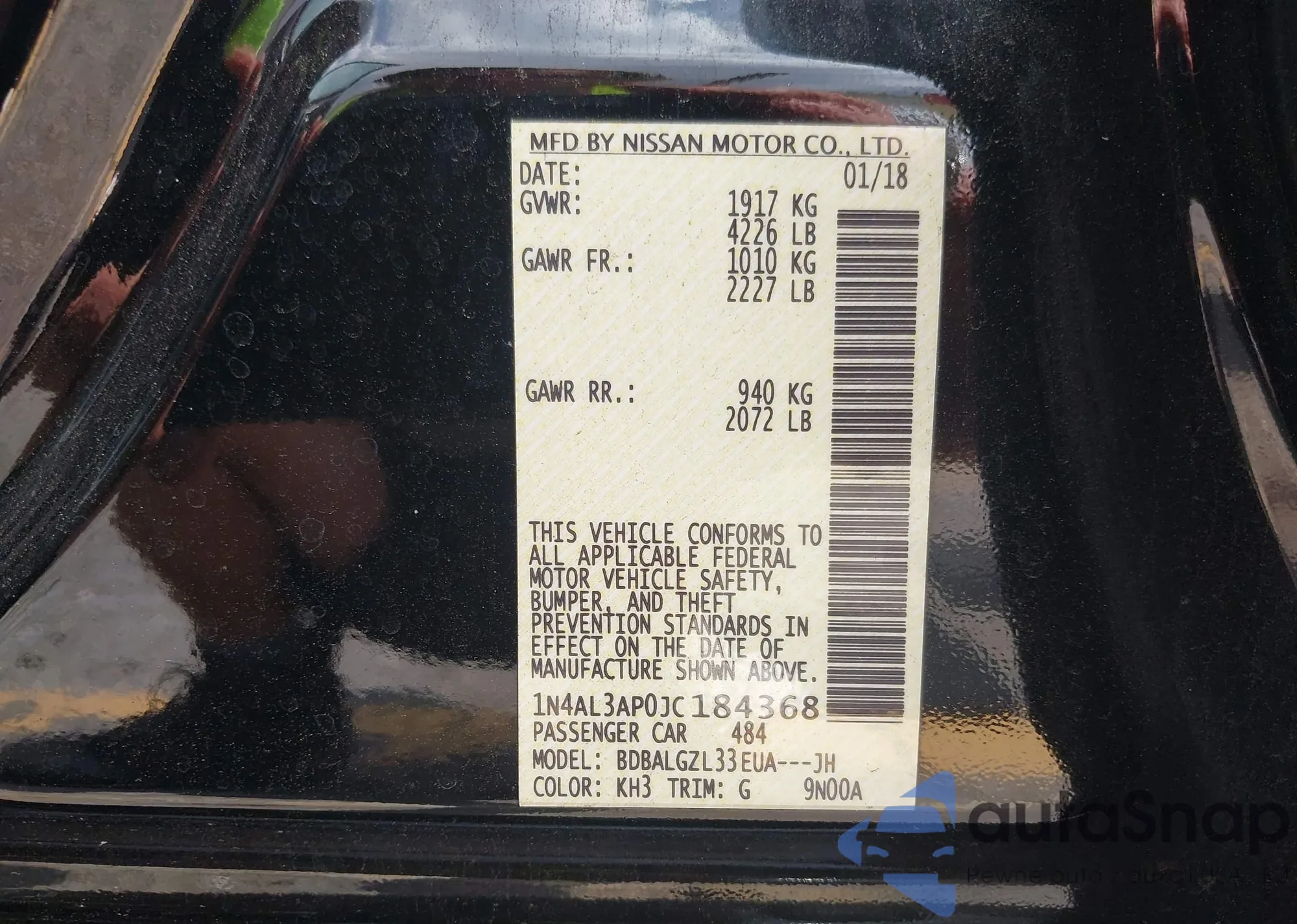 VIN: 1N4AL3AP0JC184368