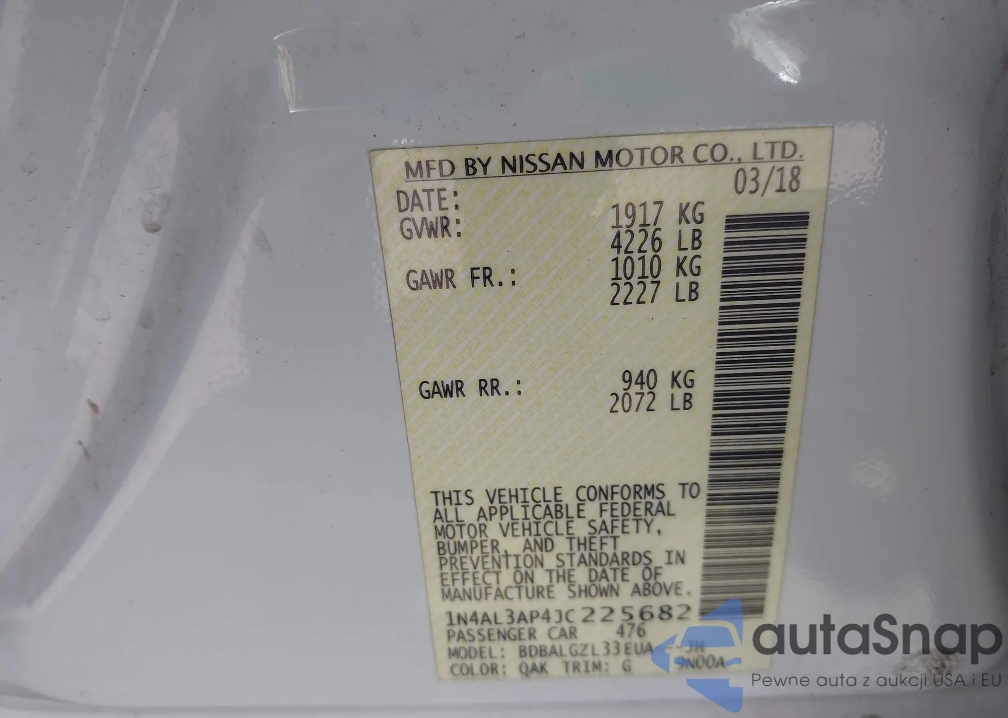VIN: 1N4AL3AP4JC225682