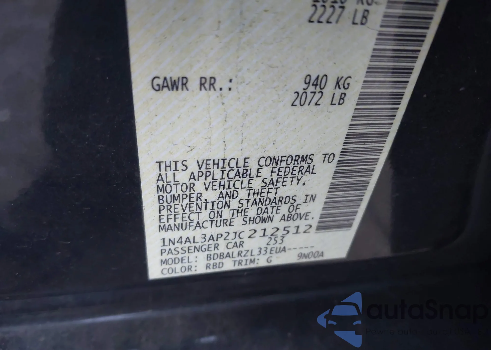 VIN: 1N4AL3AP2JC212512