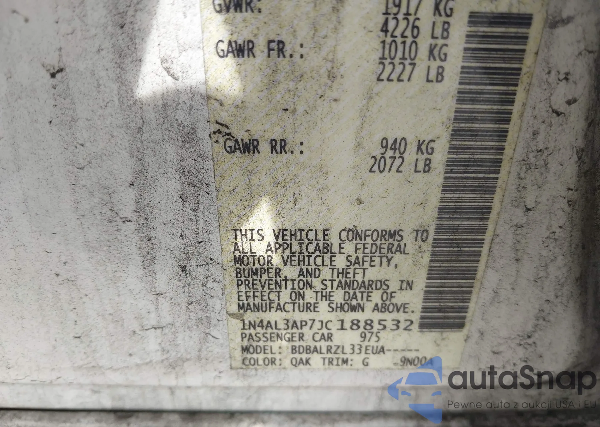 VIN: 1N4AL3AP7JC188532