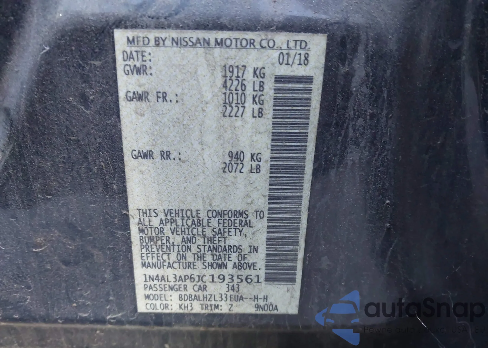 VIN: 1N4AL3AP6JC193561
